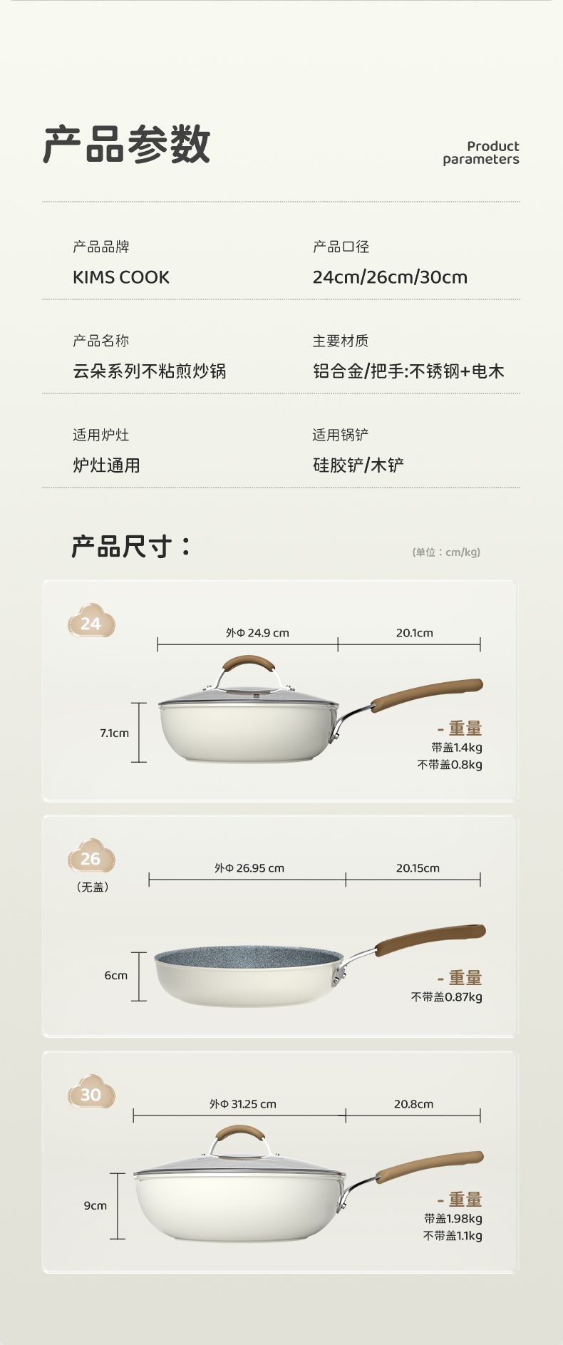 kimscook白色恋人煎锅平底锅不粘锅家用炒锅无油烟炒菜锅电磁炉燃气灶专用