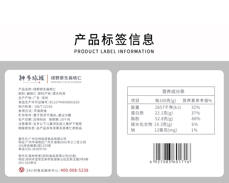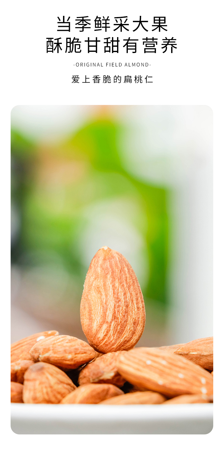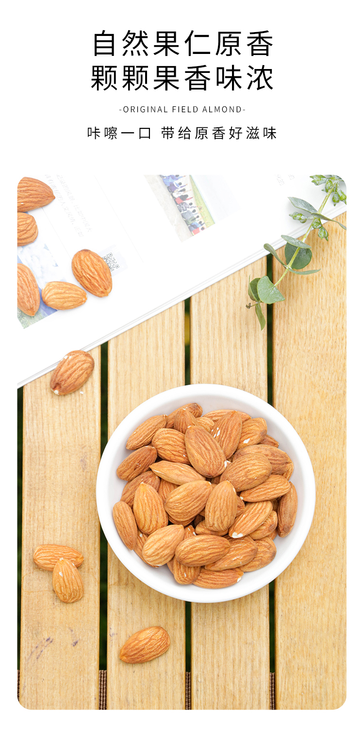 北纬纯净食品|进口扁桃仁原味杏仁巴旦木坚果零食小包装250g