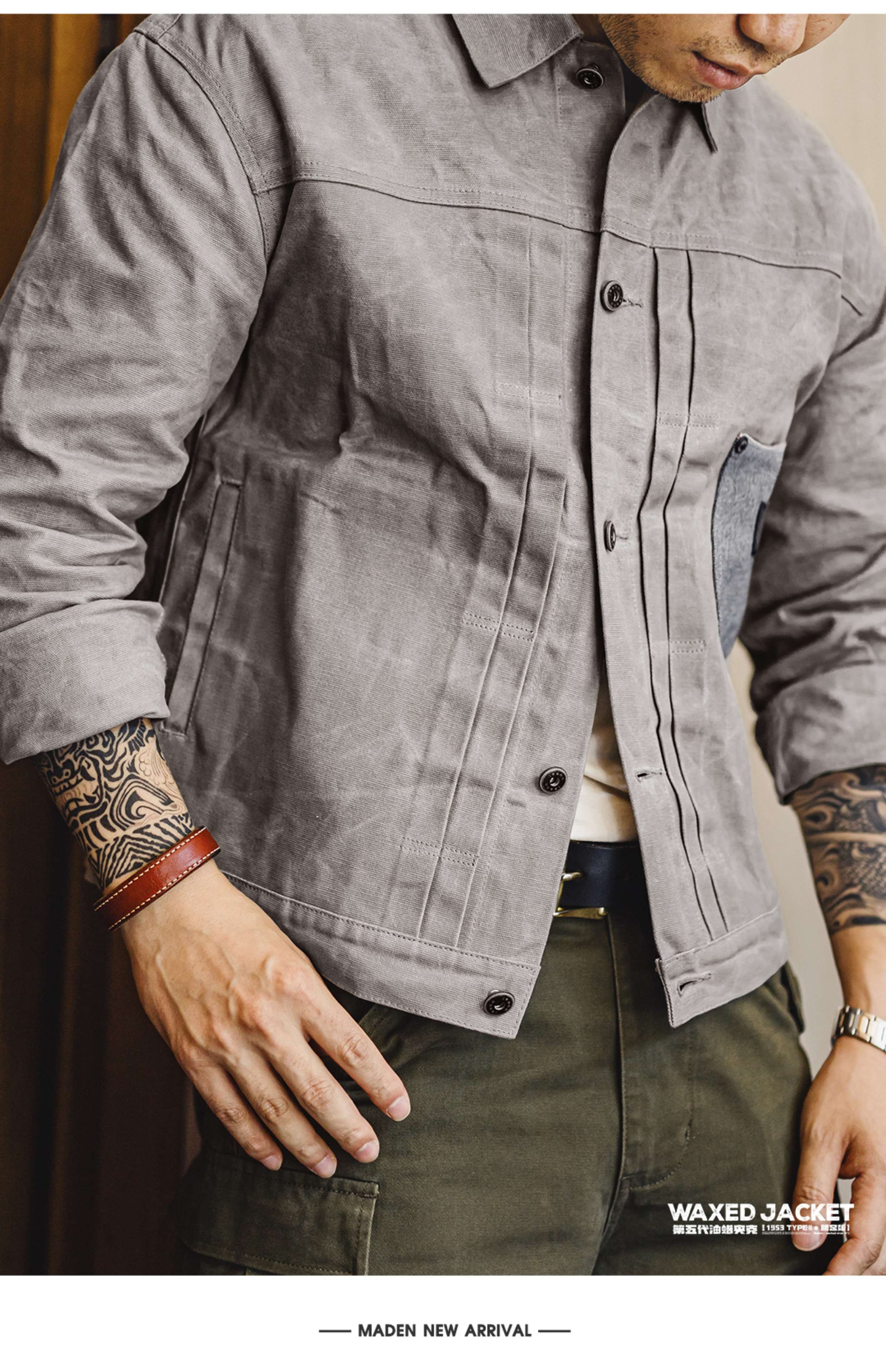 马登工装美式复古油蜡夹克vintage纯棉猎装硬挺灰色一代外套男秋