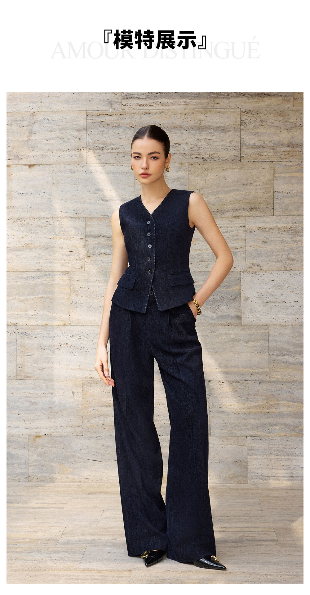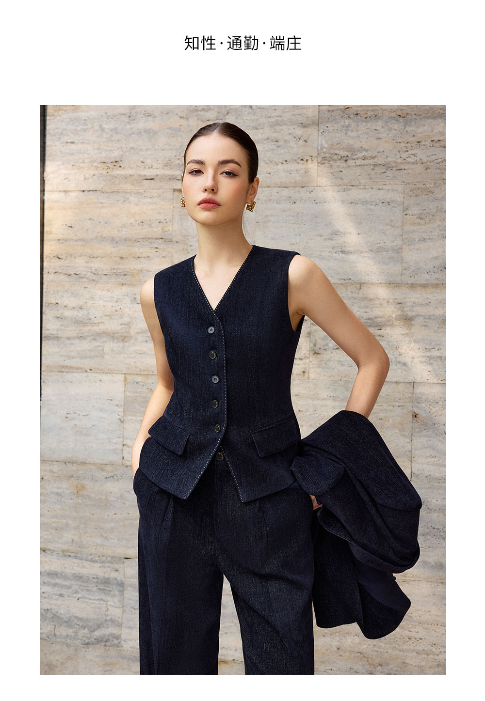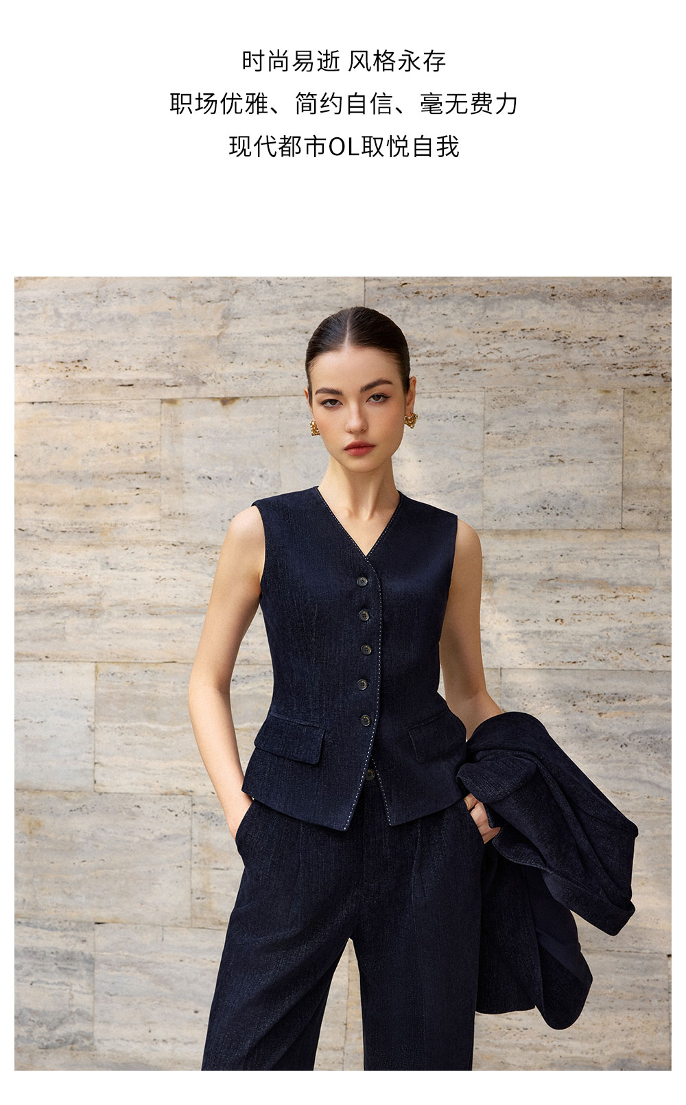 AD简约气质V领马甲上衣女2025新款内搭时尚职业装套装设计感马夹