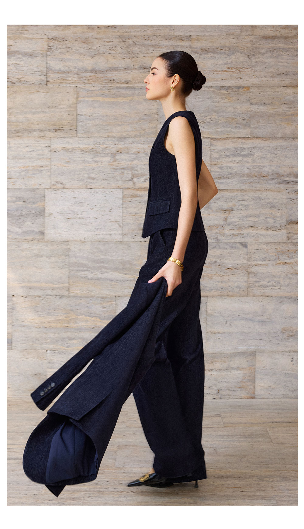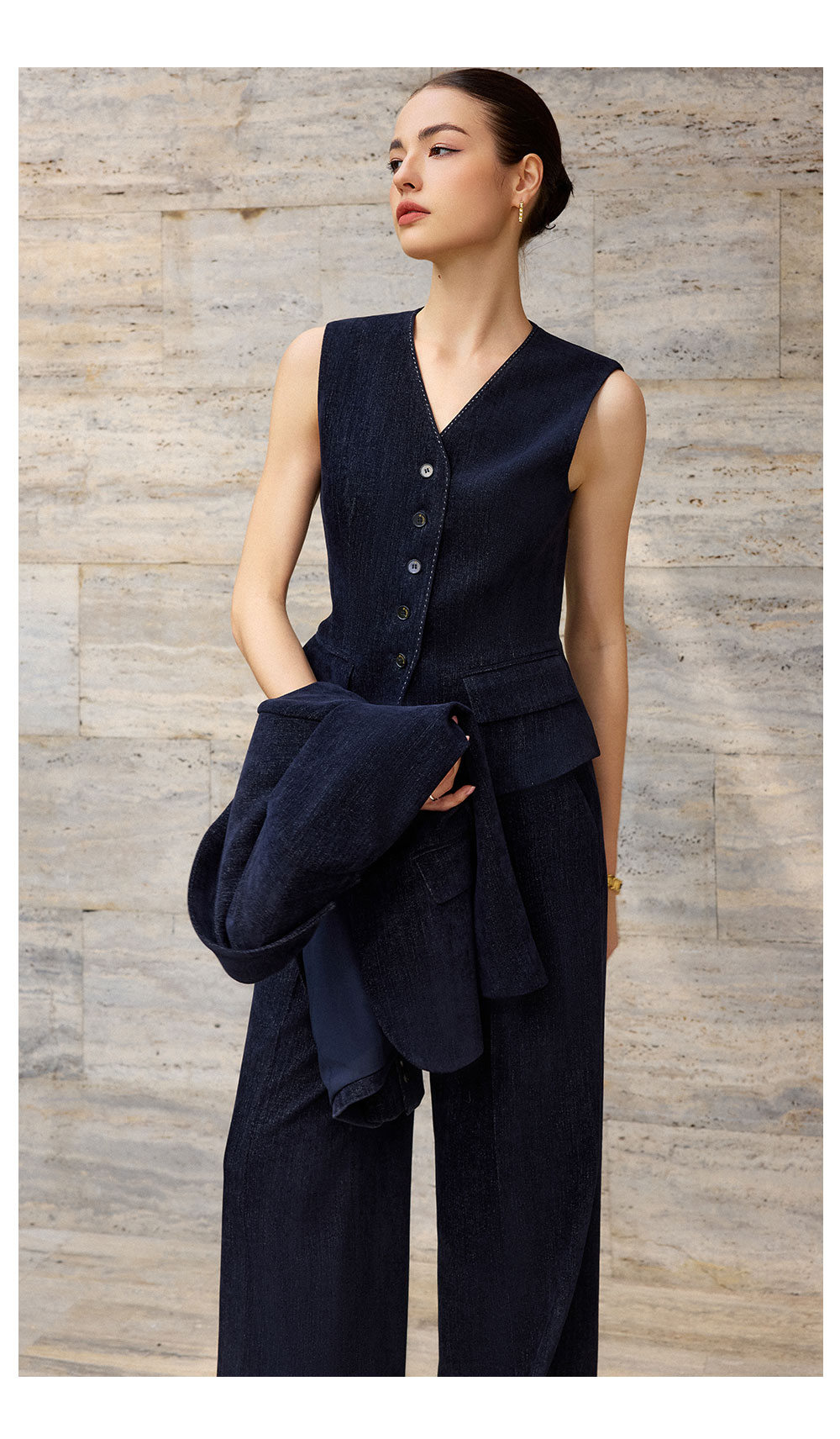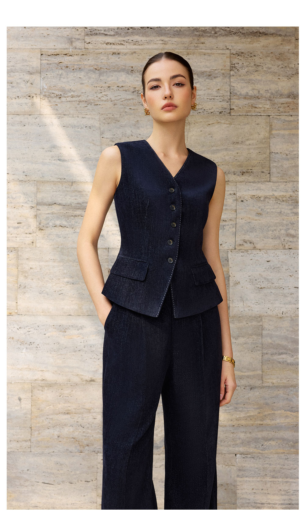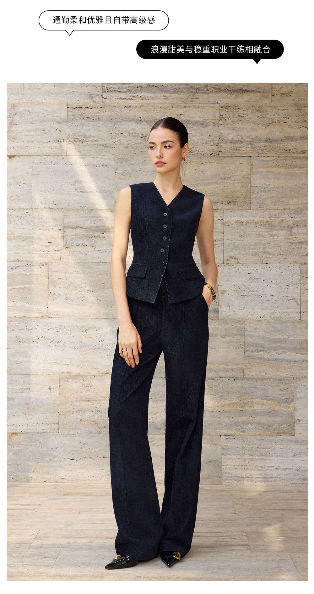 AD简约气质V领马甲上衣女2025新款内搭时尚职业装套装设计感马夹