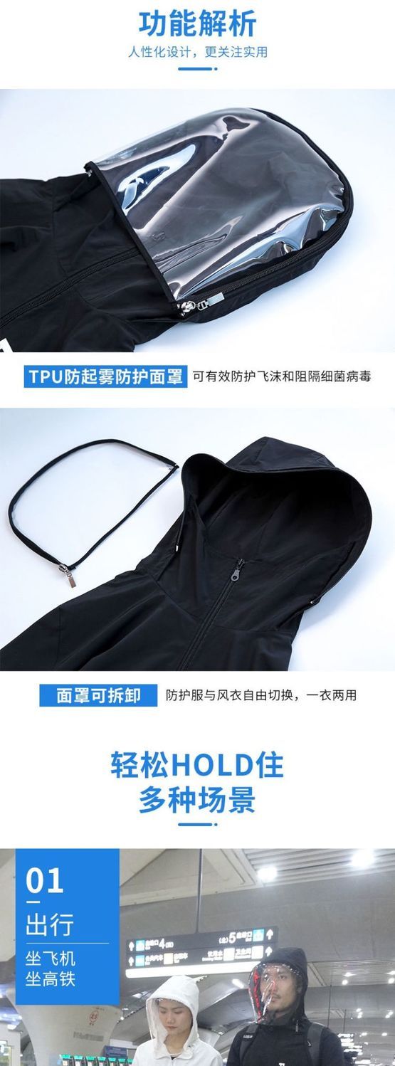 【防飞沫面罩服】民用防护隔离衣服防尘防飞沫单层透气可拆卸防