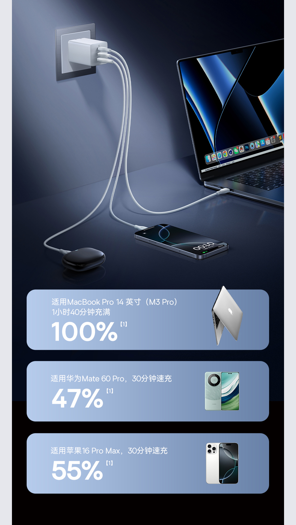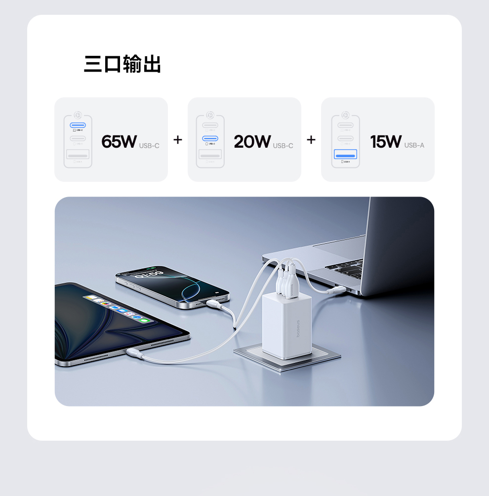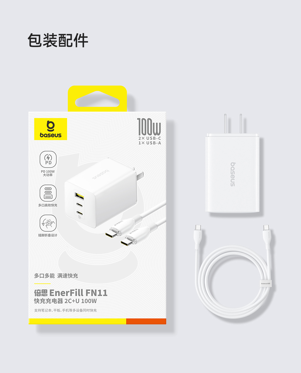 倍思 EnerFill 桌面充电器 2C+U 100W 中规