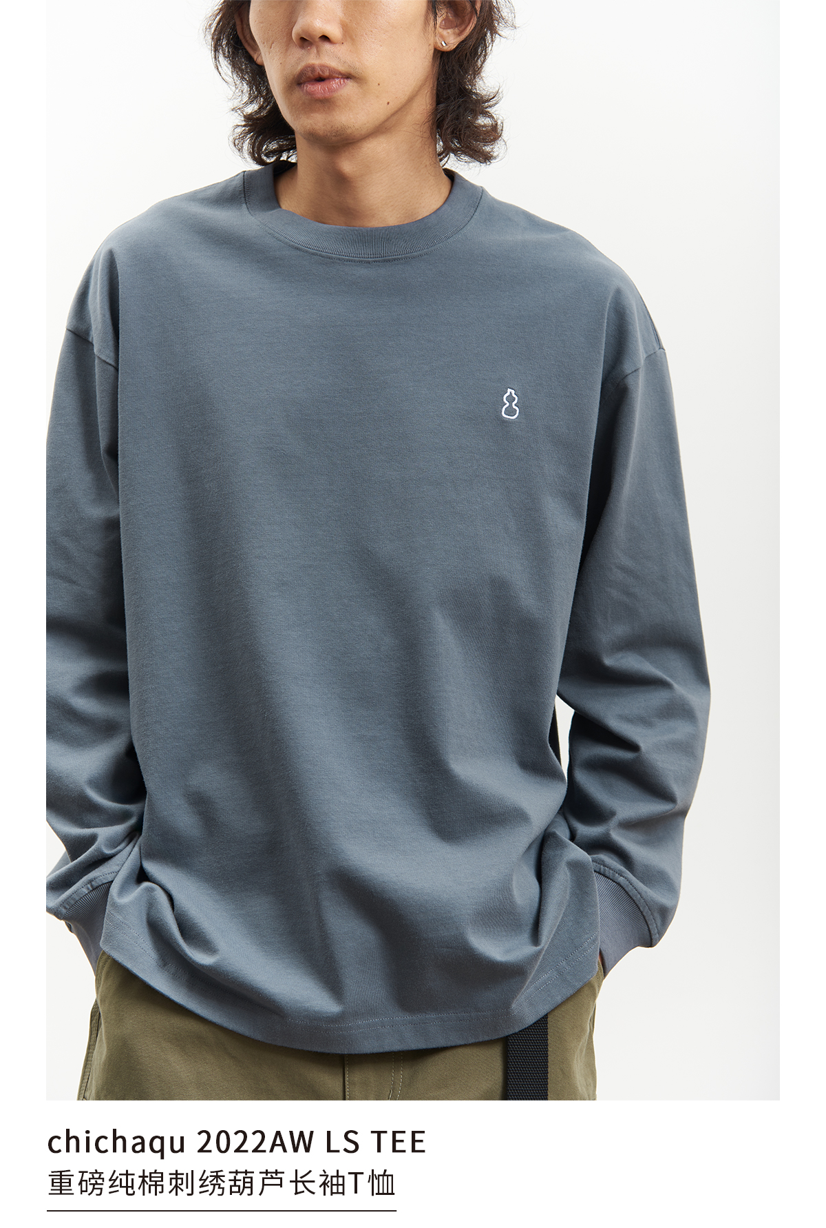 吃茶去chichaqu 重磅刺绣葫芦长袖基础T恤