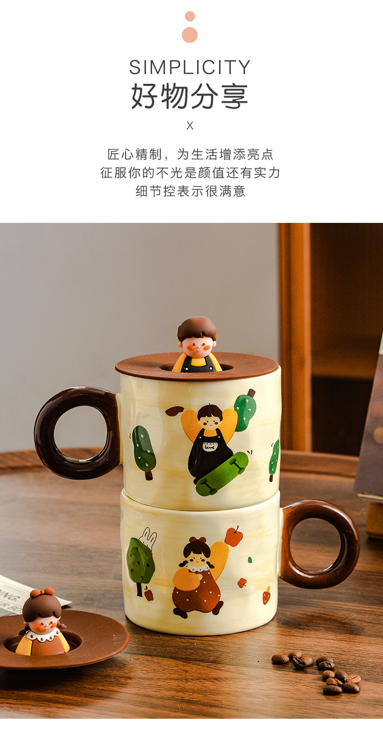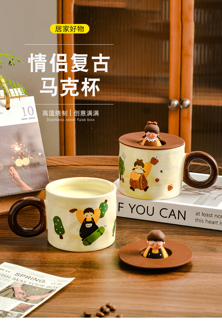 颜值好物【情侣复古马克杯!创意满满】摩登主妇马克杯套装陶瓷水杯新婚生日礼物结婚家用情侣咖啡杯礼盒。ry