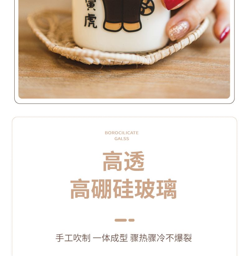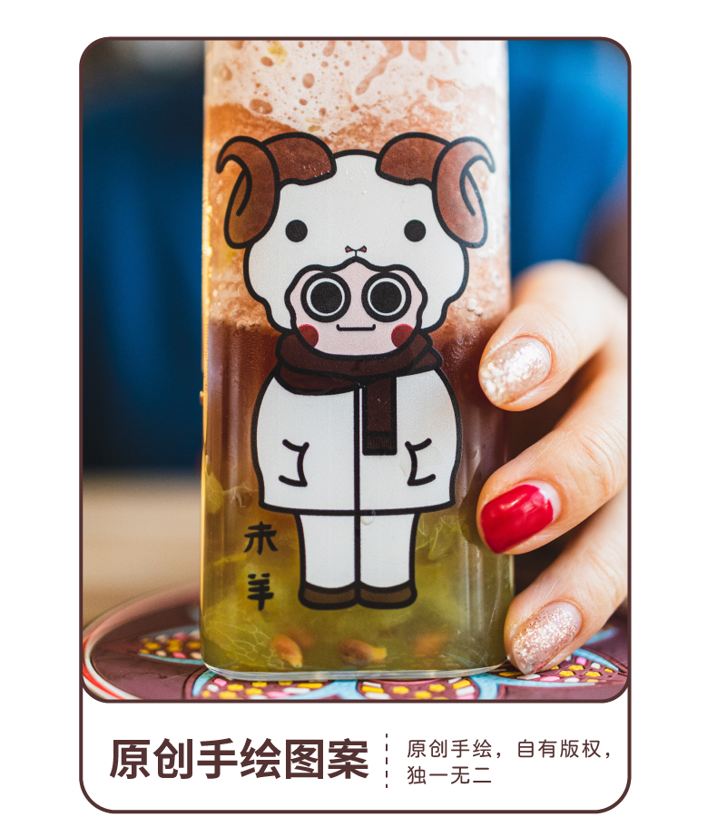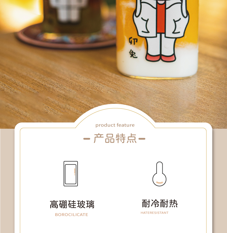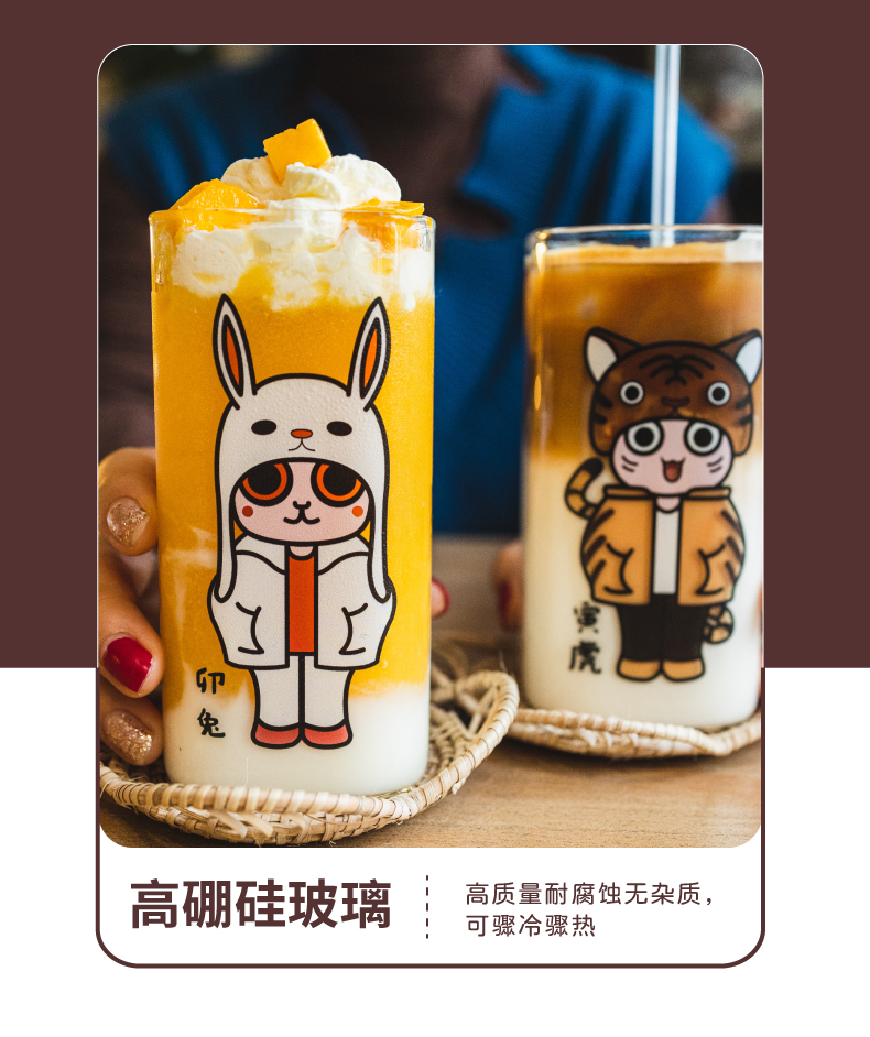 山重山(MOM)玻璃杯子女生水杯喝水牛奶杯家用网红咖啡杯 高颜值ins风 卯(兔)400ml耐高温可微波