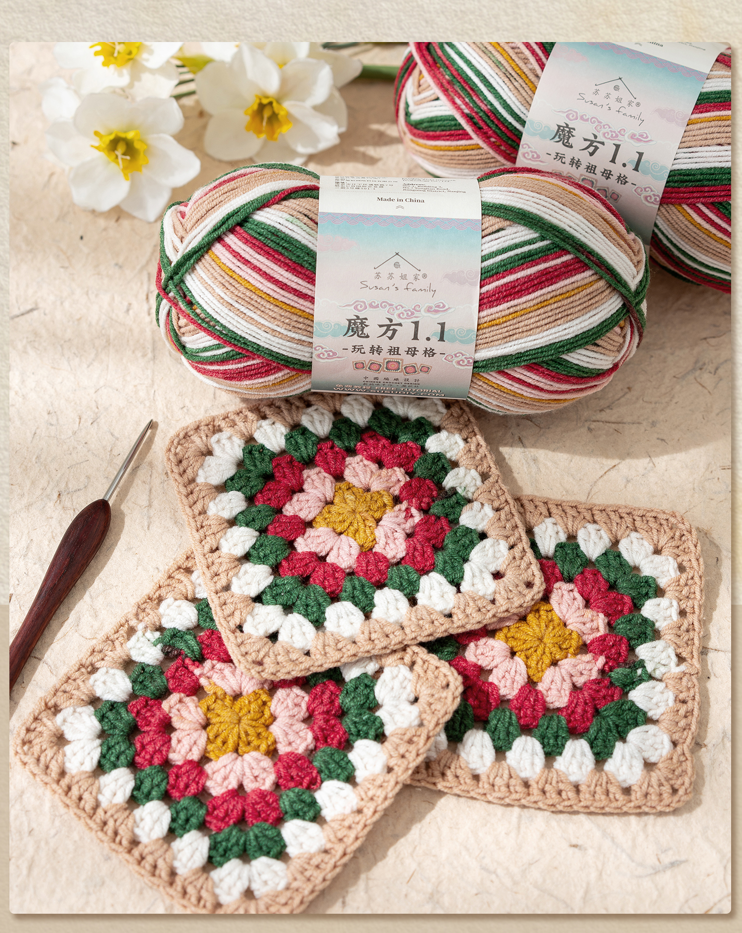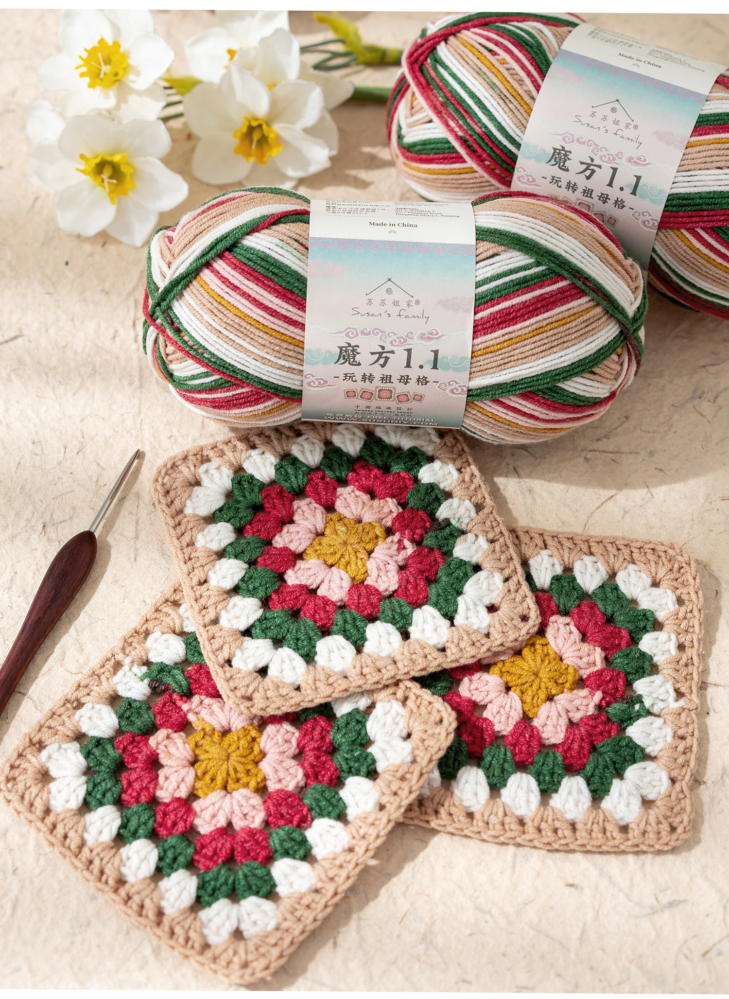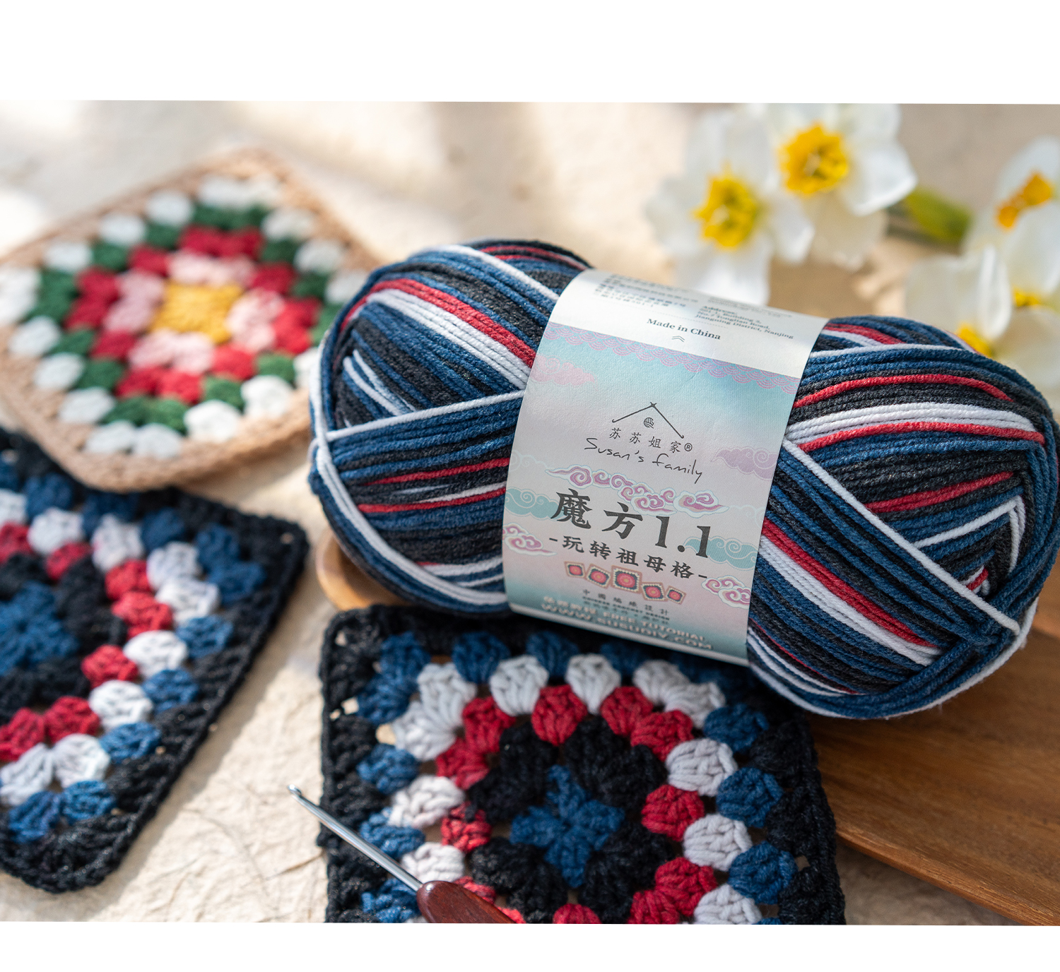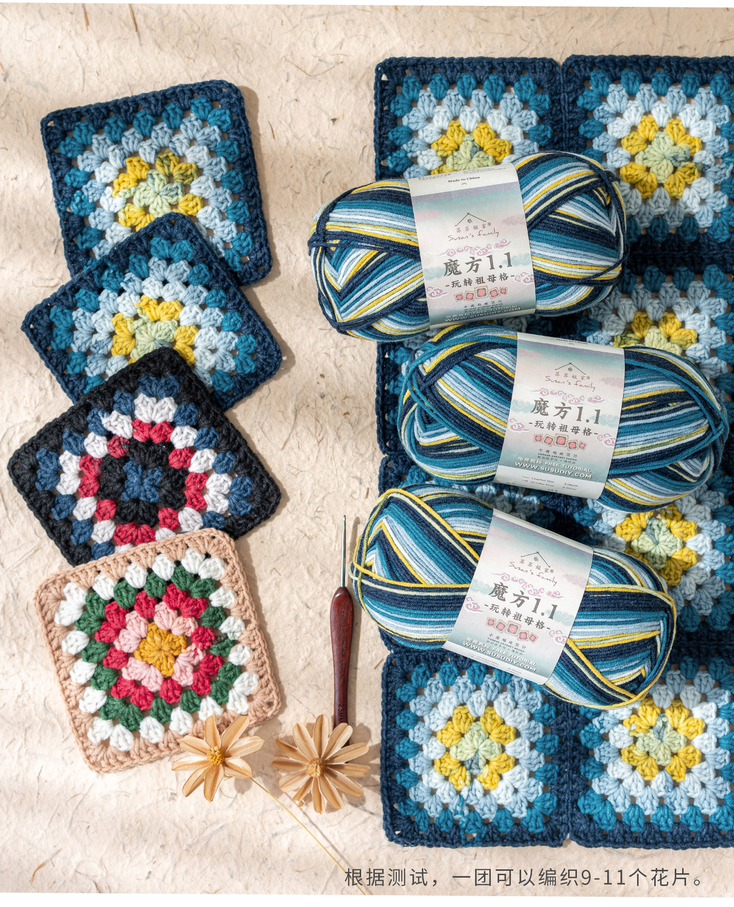 苏苏姐家魔方1.1四股棉手工钩针diy编织毛衣围巾祖母格新手毛线团