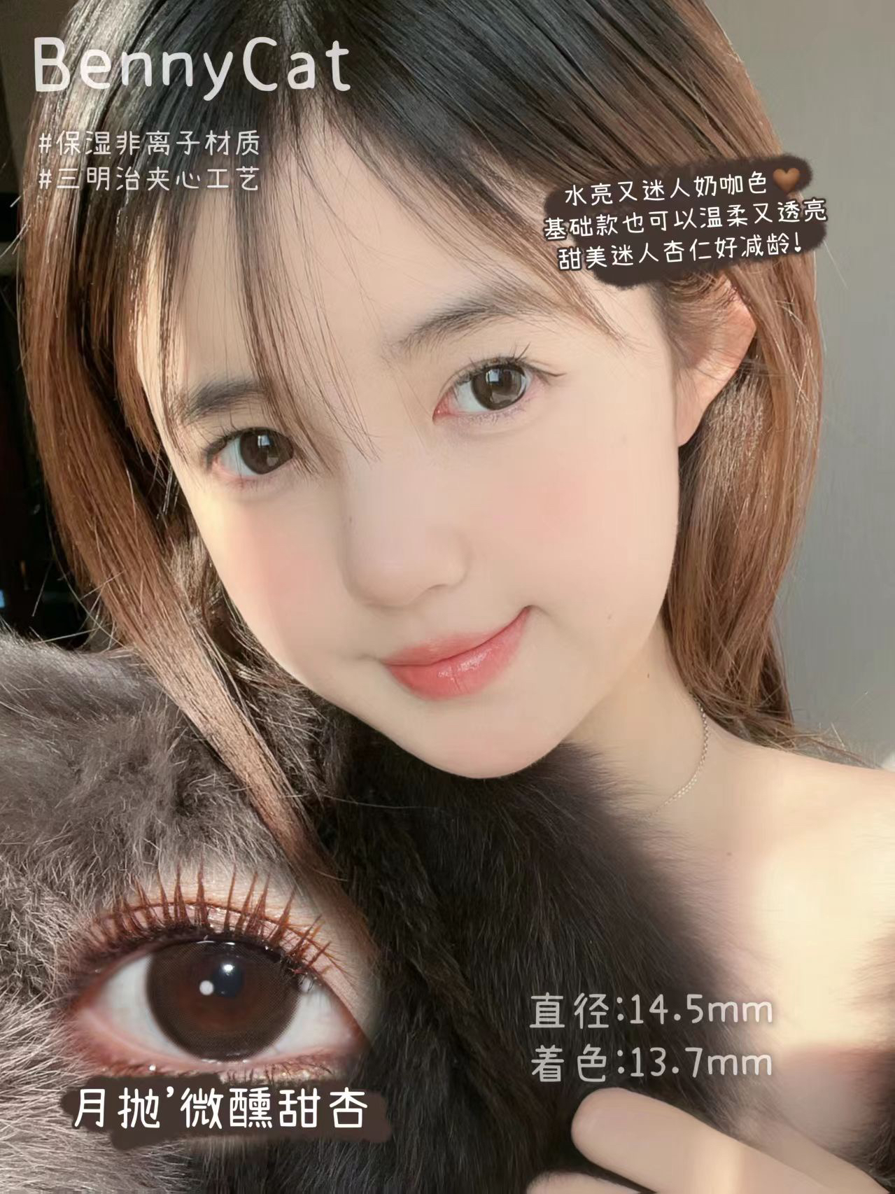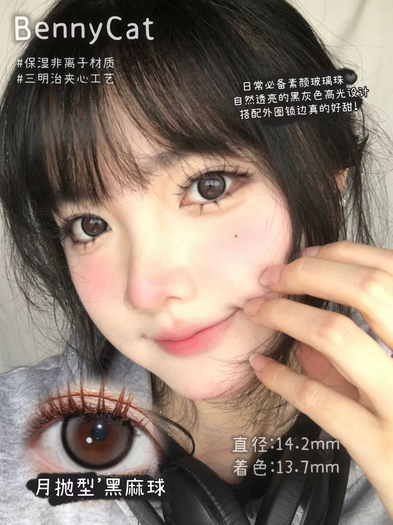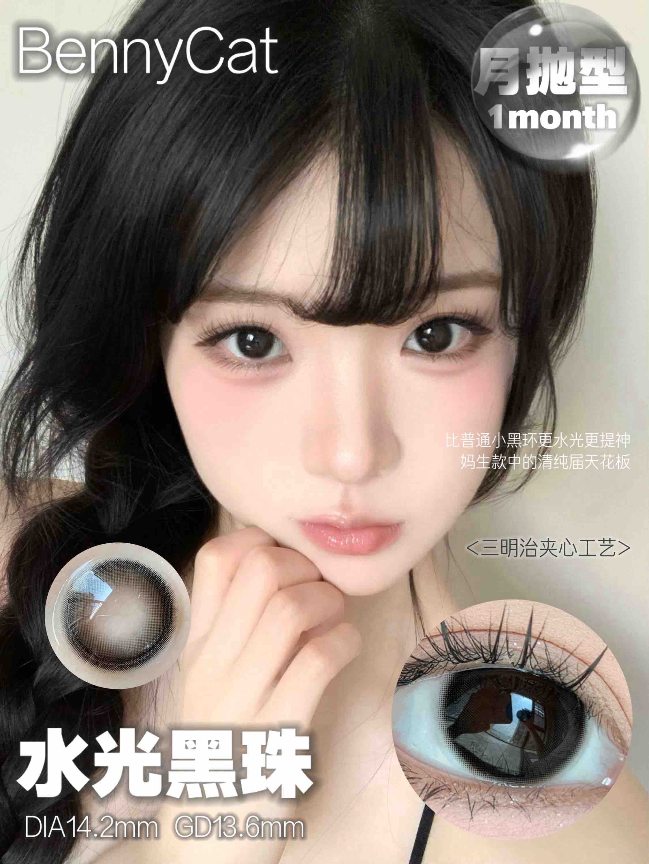 bennycat 月抛合集奶油粟米/水光黑珠/黑麻球等混血自然款等三明治工艺美瞳