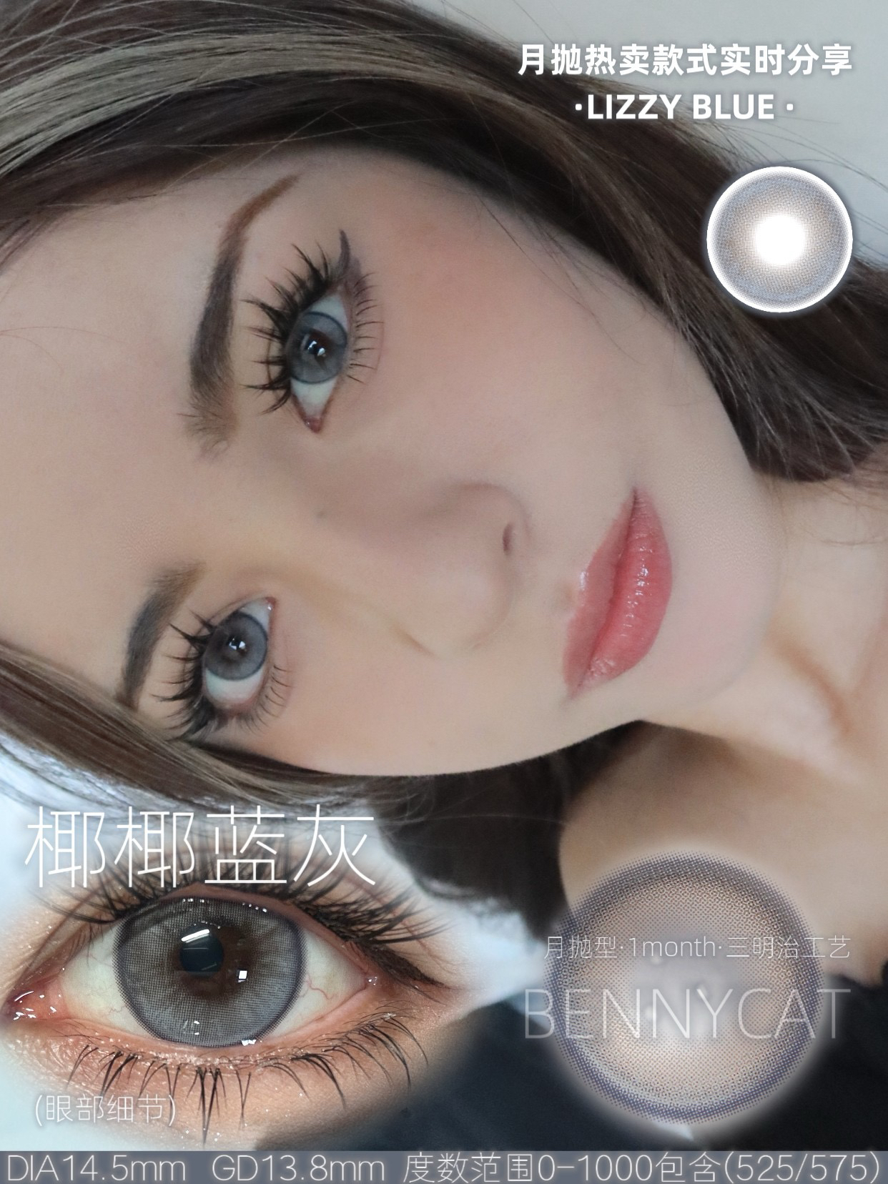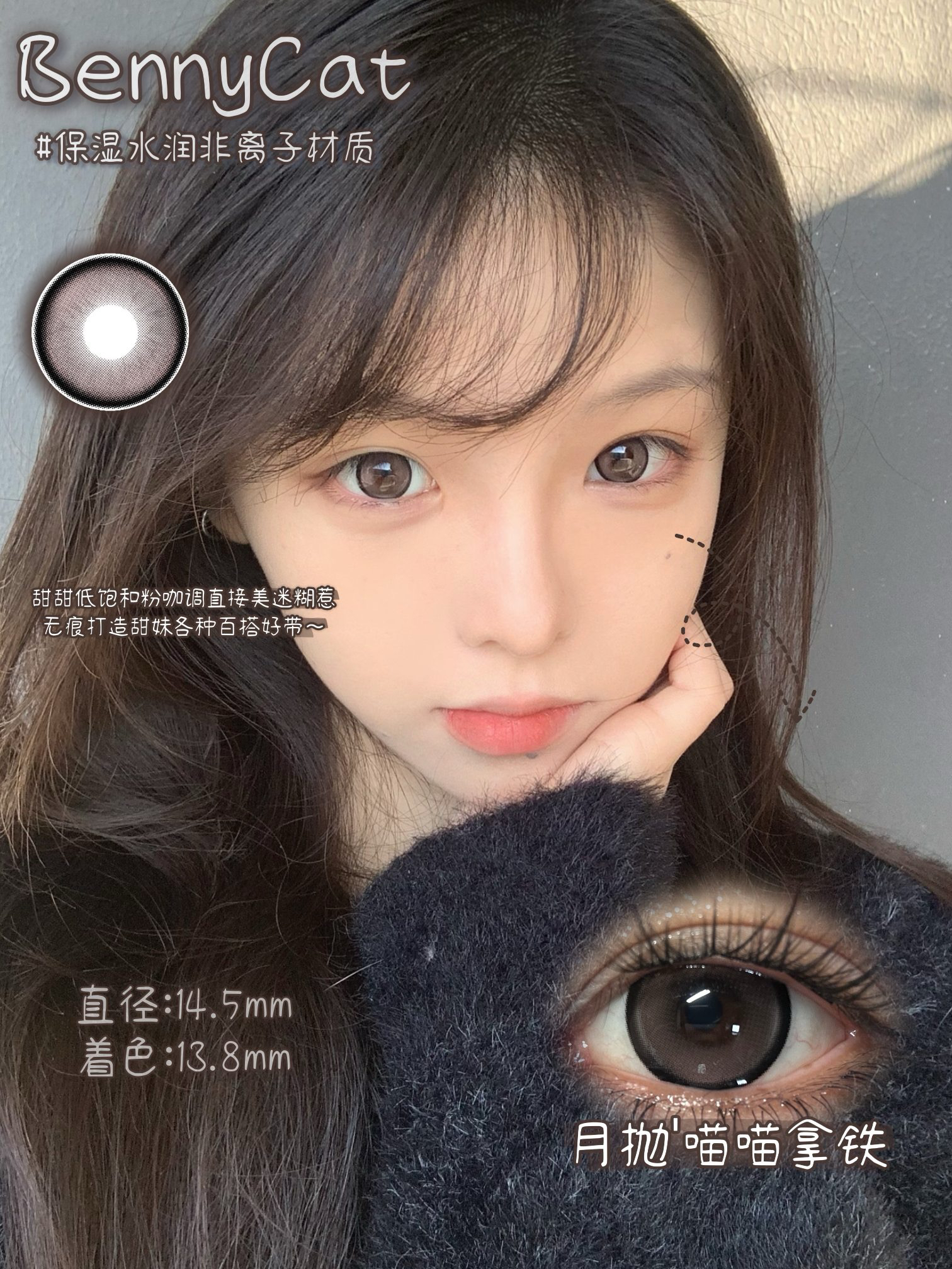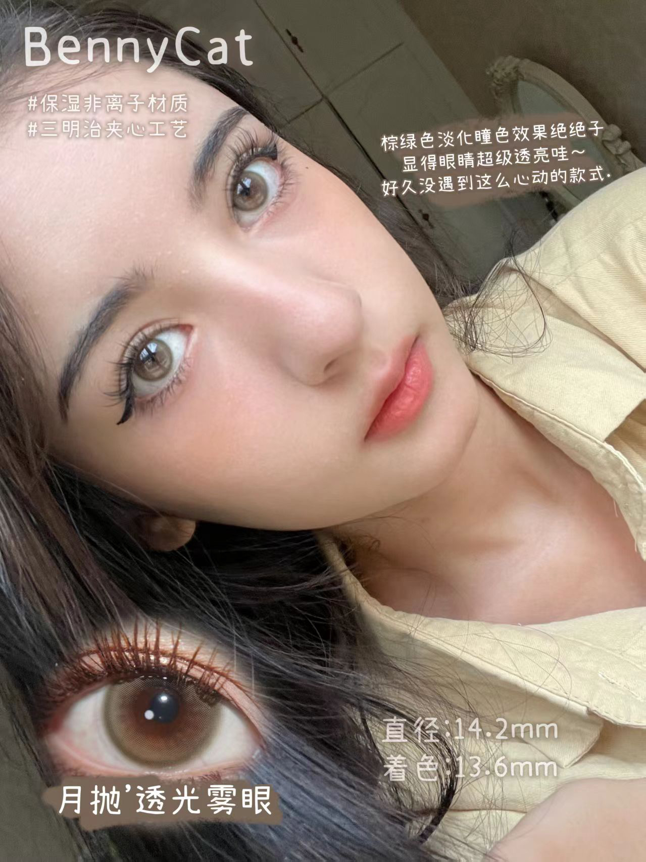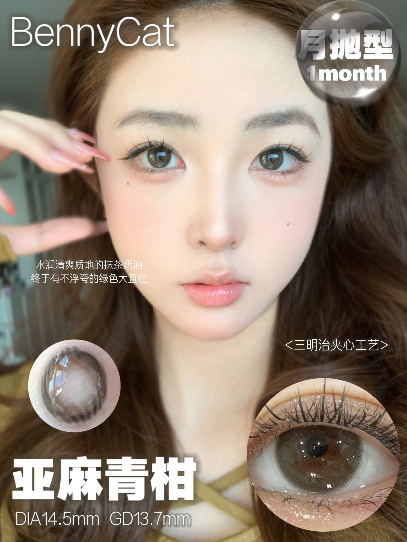 bennycat 月抛合集奶油粟米/水光黑珠/黑麻球等混血自然款等三明治工艺美瞳