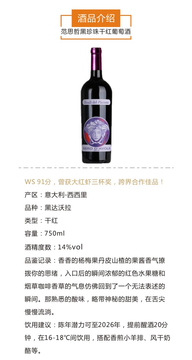 范思哲干红葡萄酒Feudi Del Pisciotto Nero D'avola(2011)