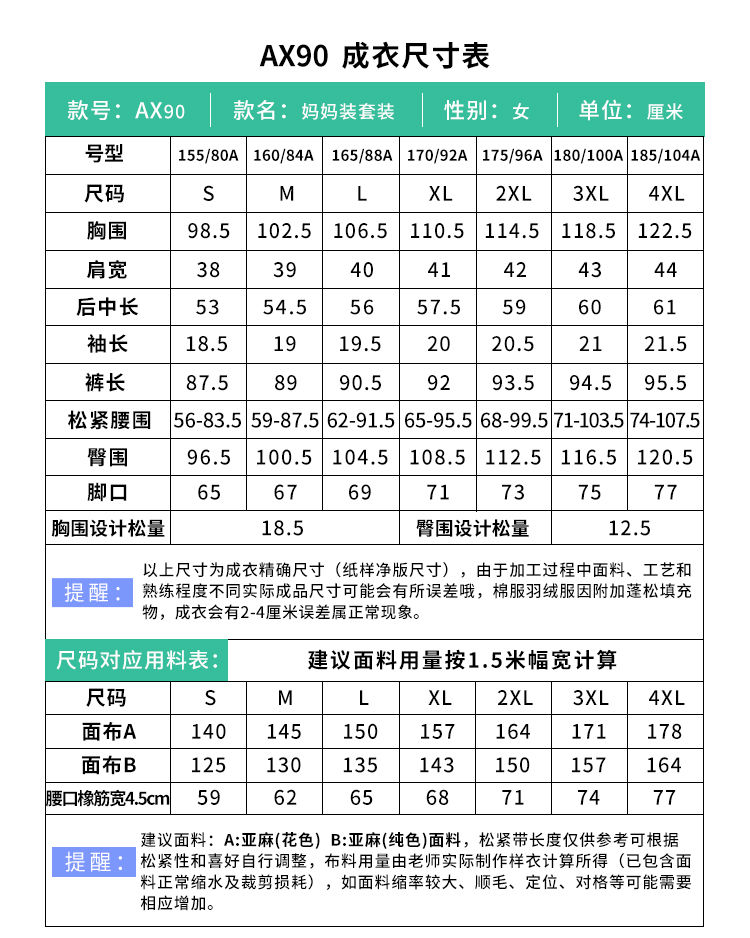裁缝学苑AX90新款中老年妈妈短袖小衫纸样阔腿裤子套装打版裁剪板