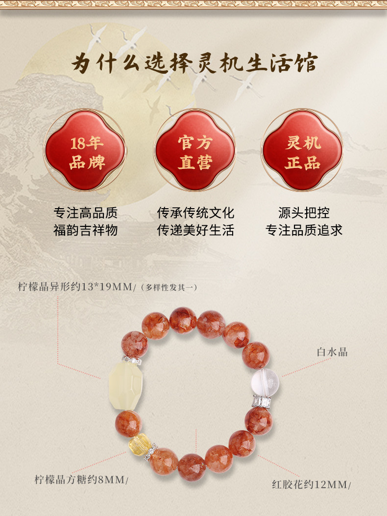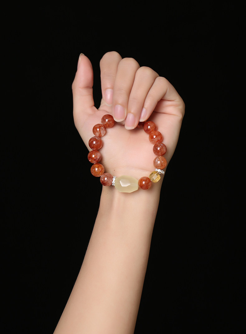 【祈愿吉品】红胶花柠檬切面手链
