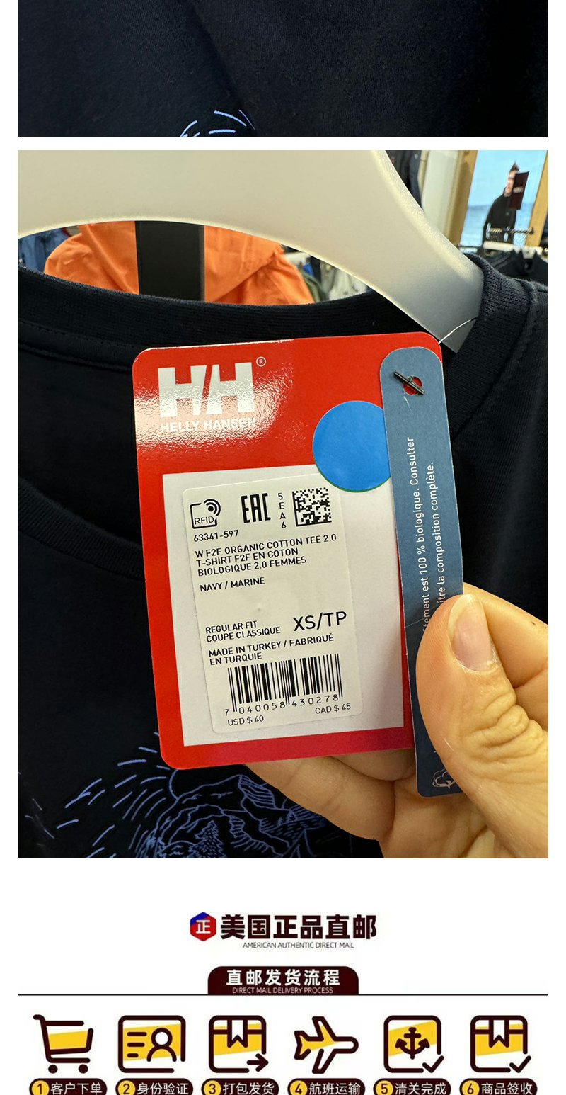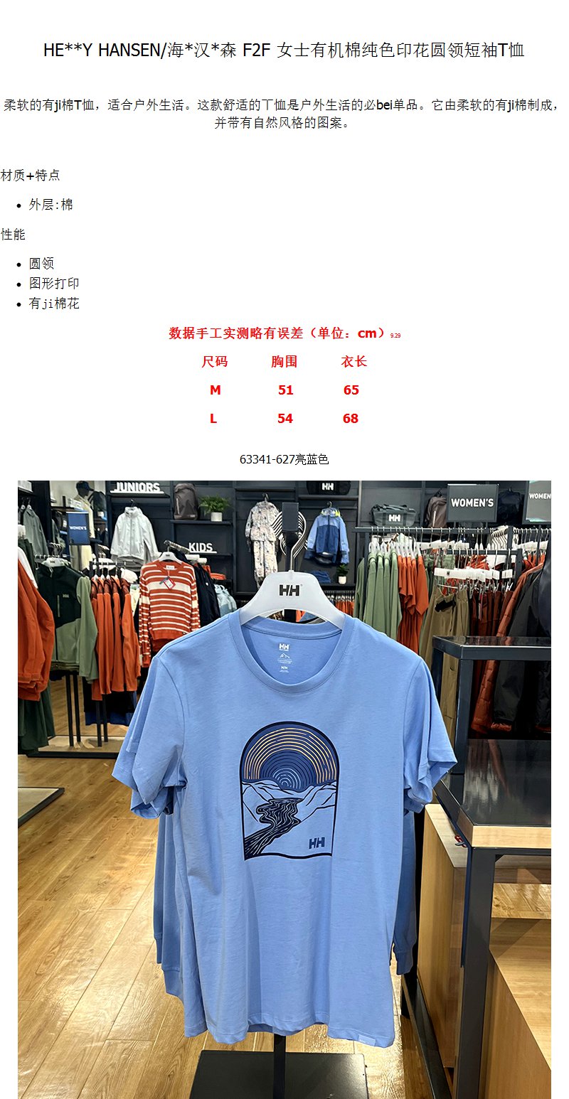 HE**Y HANSEN/海*汉*森 F2F 女士有机棉纯色印花圆领短袖T恤