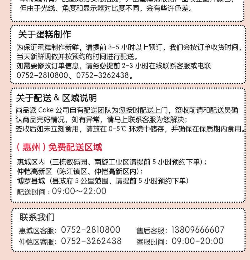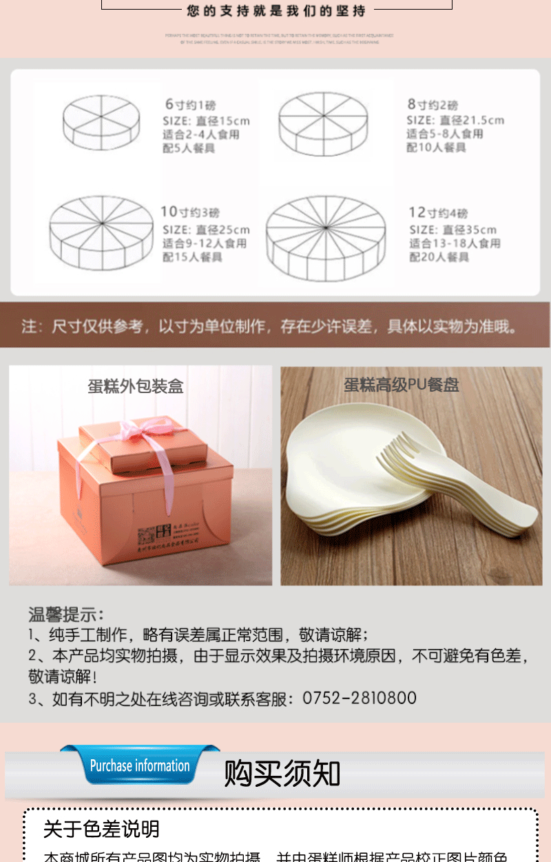我们坚持当日接单、新鲜现做,拒绝罐头果肉与植物奶油,让每一口都保留食材本真的鲜活清甜。生活需要一点甜,我们的蛋糕不只是一份甜品,更是传递快乐的仪式感,为你带来视觉与味蕾的双重满足~
