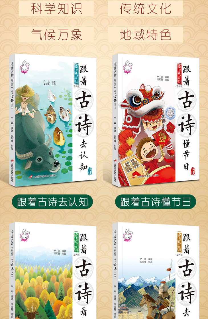 读给孩子的诗 全4册 跟着古诗去旅行 节日四季认知儿童启蒙早教国学 小学生课外阅读书籍儿童经典必读故事书 一二三年级语文古诗词