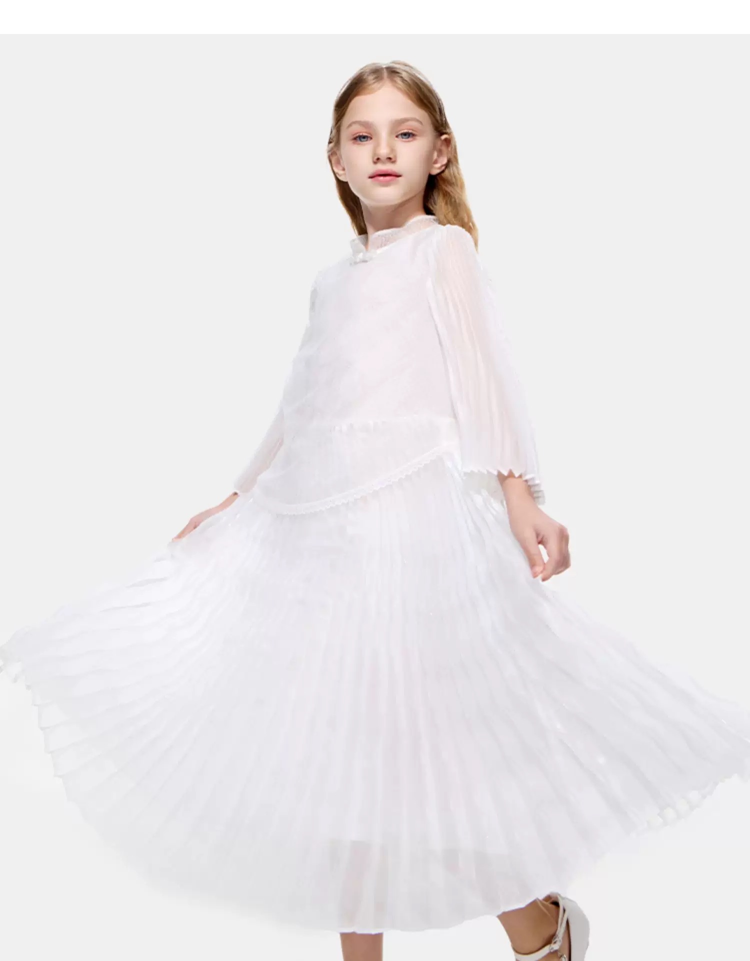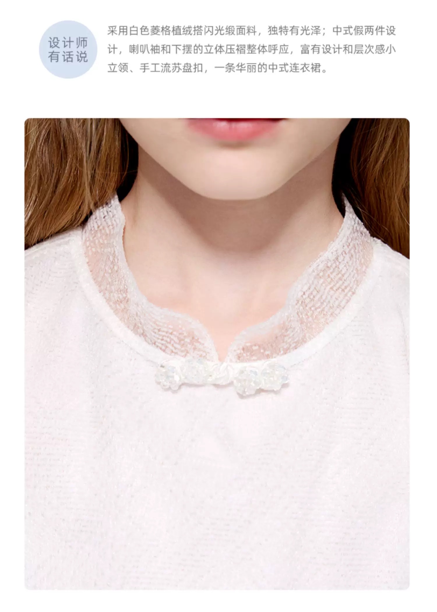 【暑期福袋任选3件799】8楼LYNN&MILO琳麦罗白色菱格植绒闪光缎压褶中式连衣裙