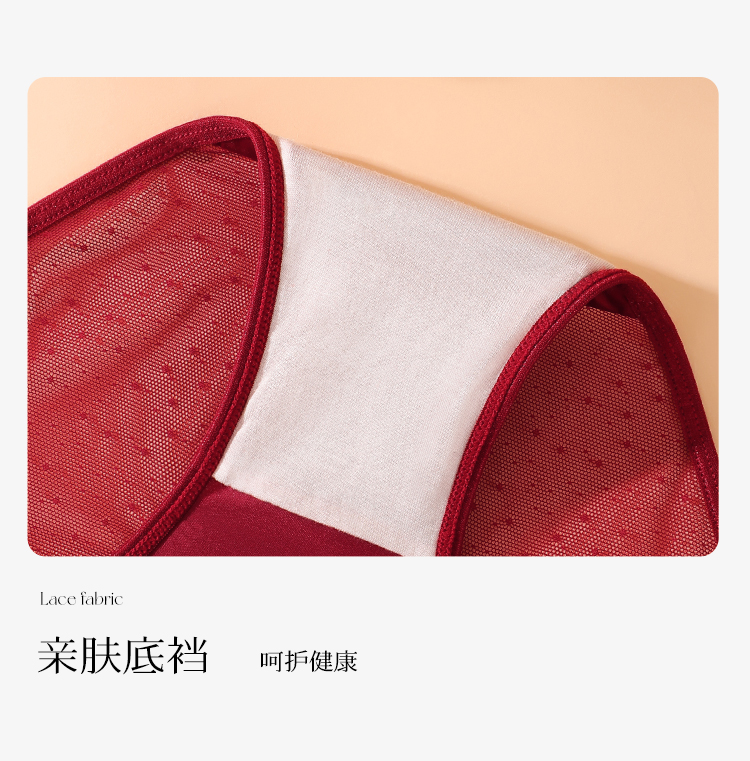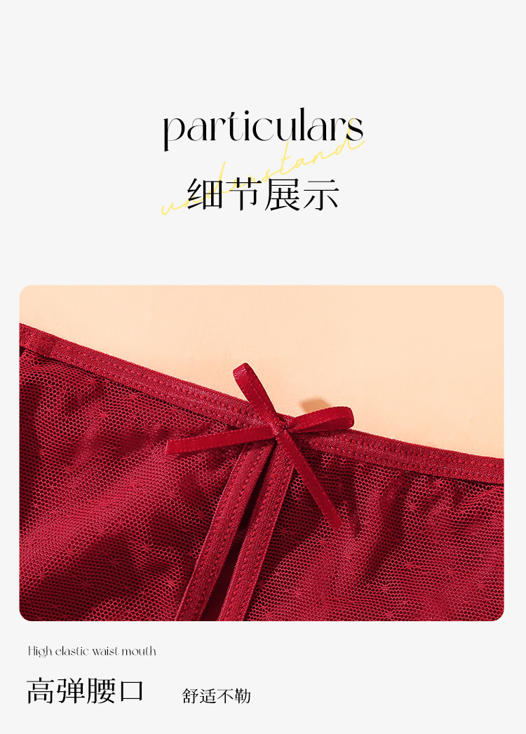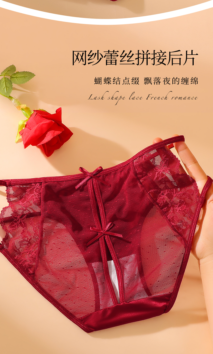 金蛇本命年红色新婚性感酒红色缎面蕾丝内裤女半透镂空网纱绑带欲感蕾丝内裤