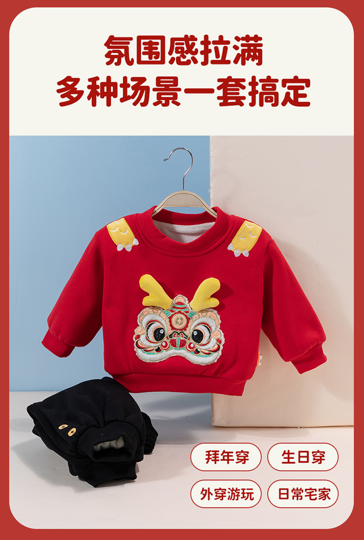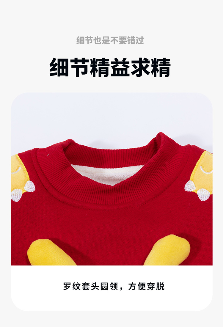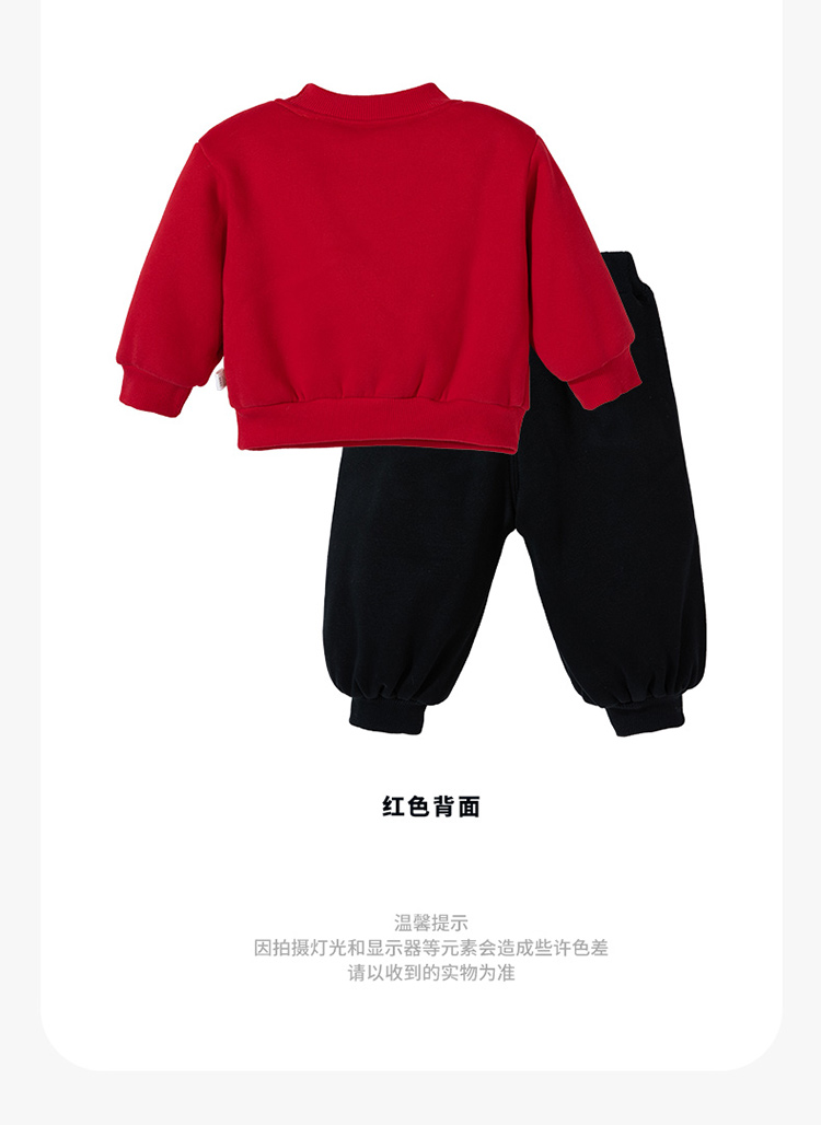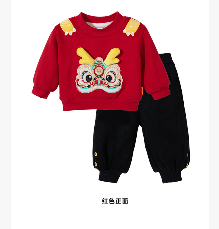 贝贝怡男童新年拜年服套装儿童过年大红加绒卫衣女大童中国风冬装ZB1DT005