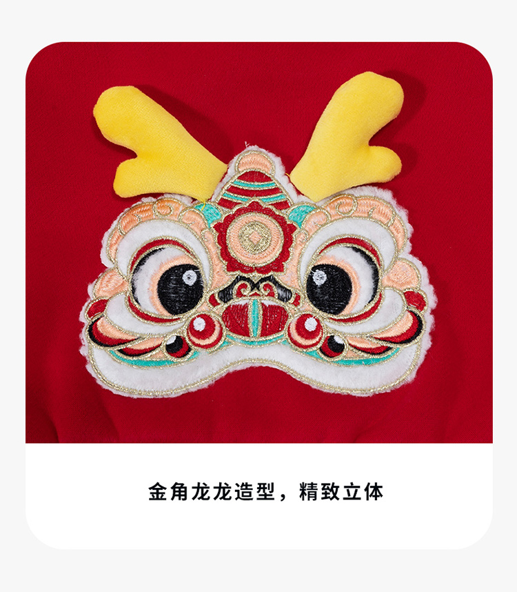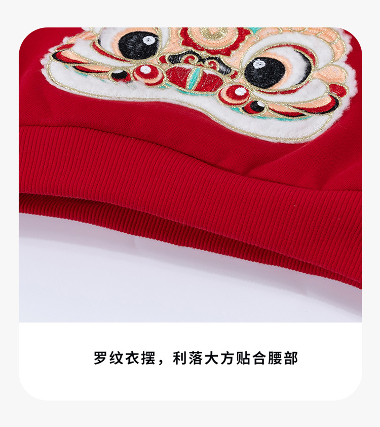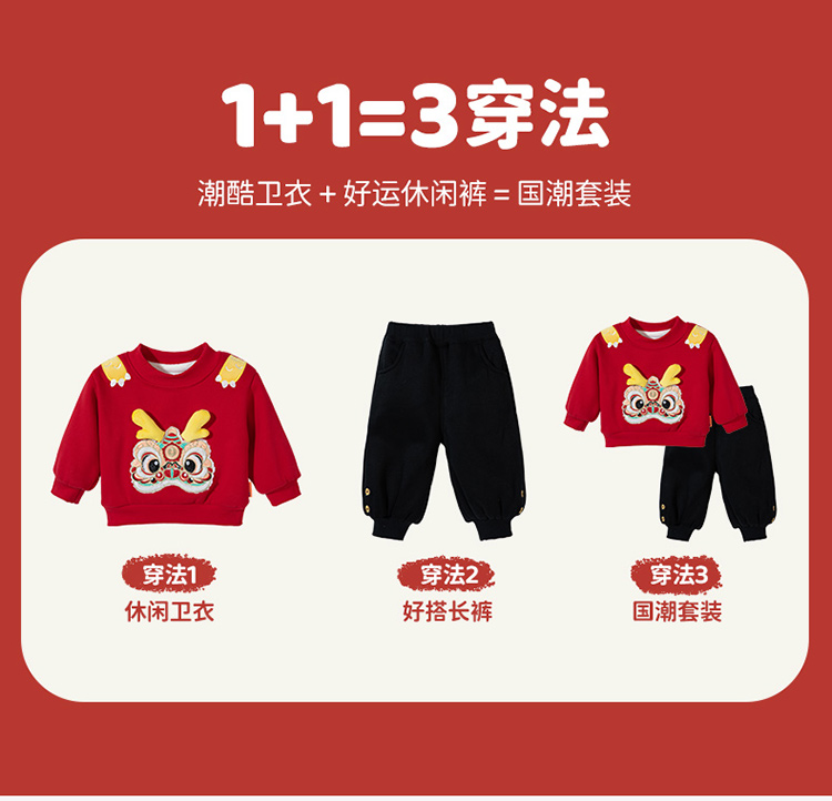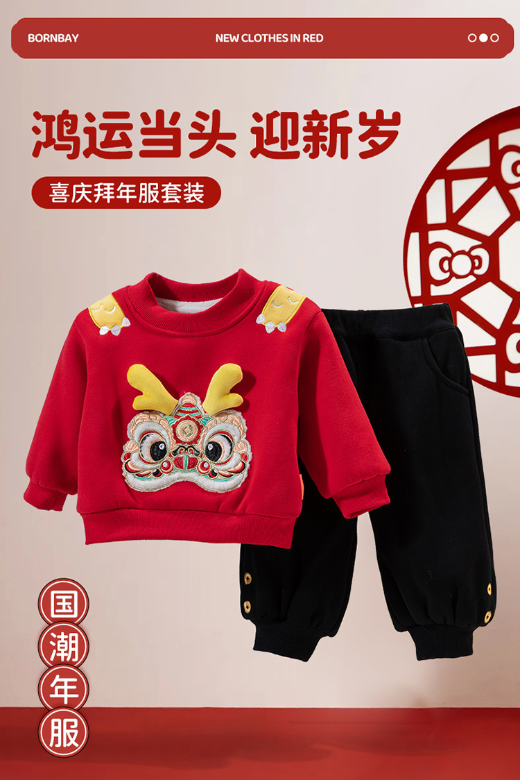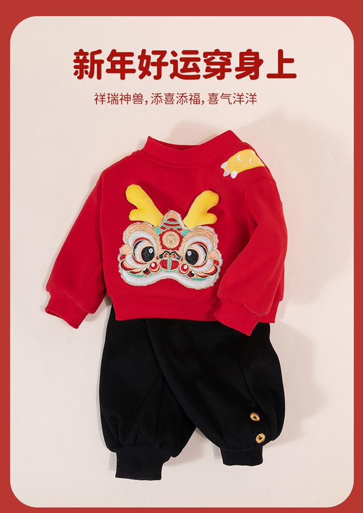 贝贝怡男童新年拜年服套装儿童过年大红加绒卫衣女大童中国风冬装ZB1DT005
