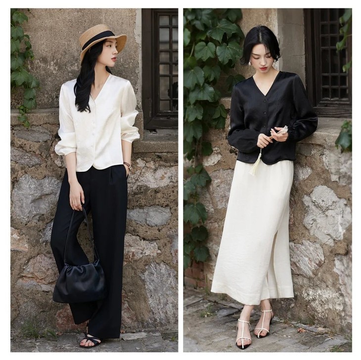 一共有香槟米,香云黑 2个颜色,都是非常气质百搭的颜色,无论你是20岁还是50岁都能穿出不一样的美!一样的高级感!