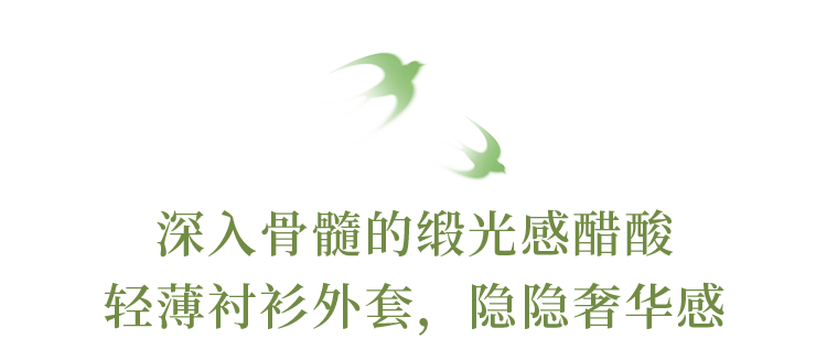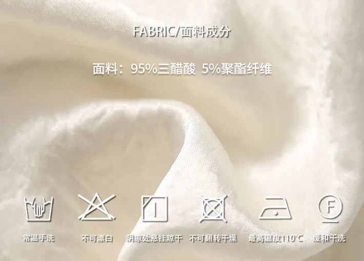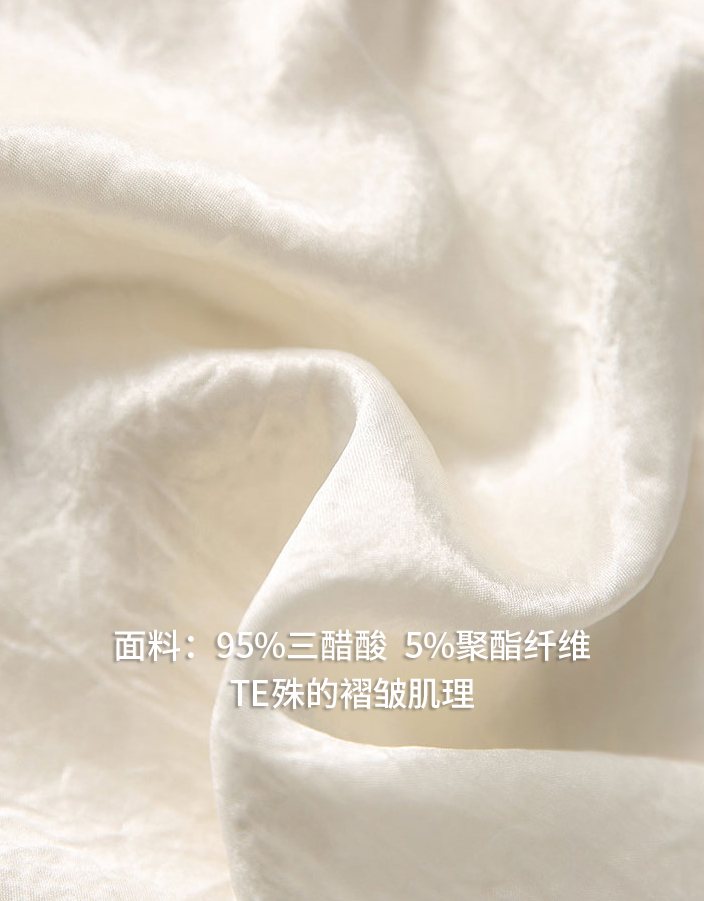 醋酸纤维被称为“可以水洗的真丝”,在触感上和真丝相似,但比真丝更柔和,比聚酯纤维摸上去体感要舒适很多。