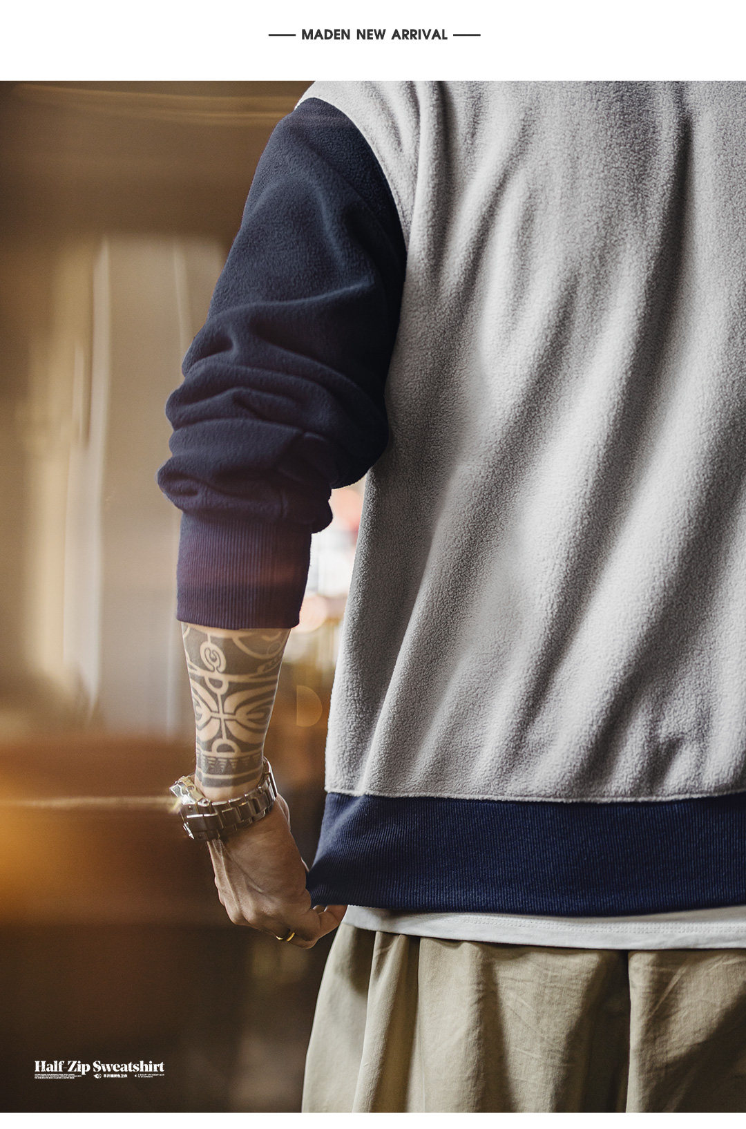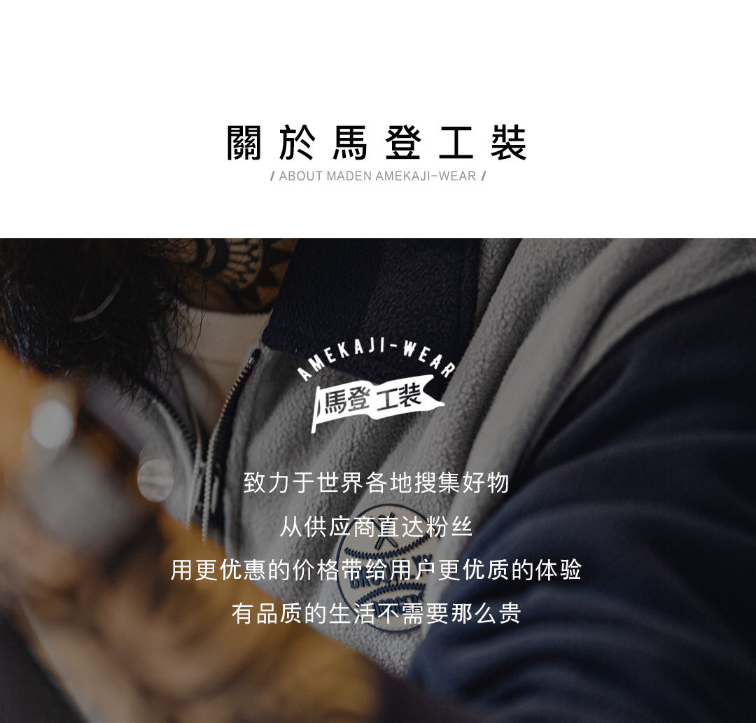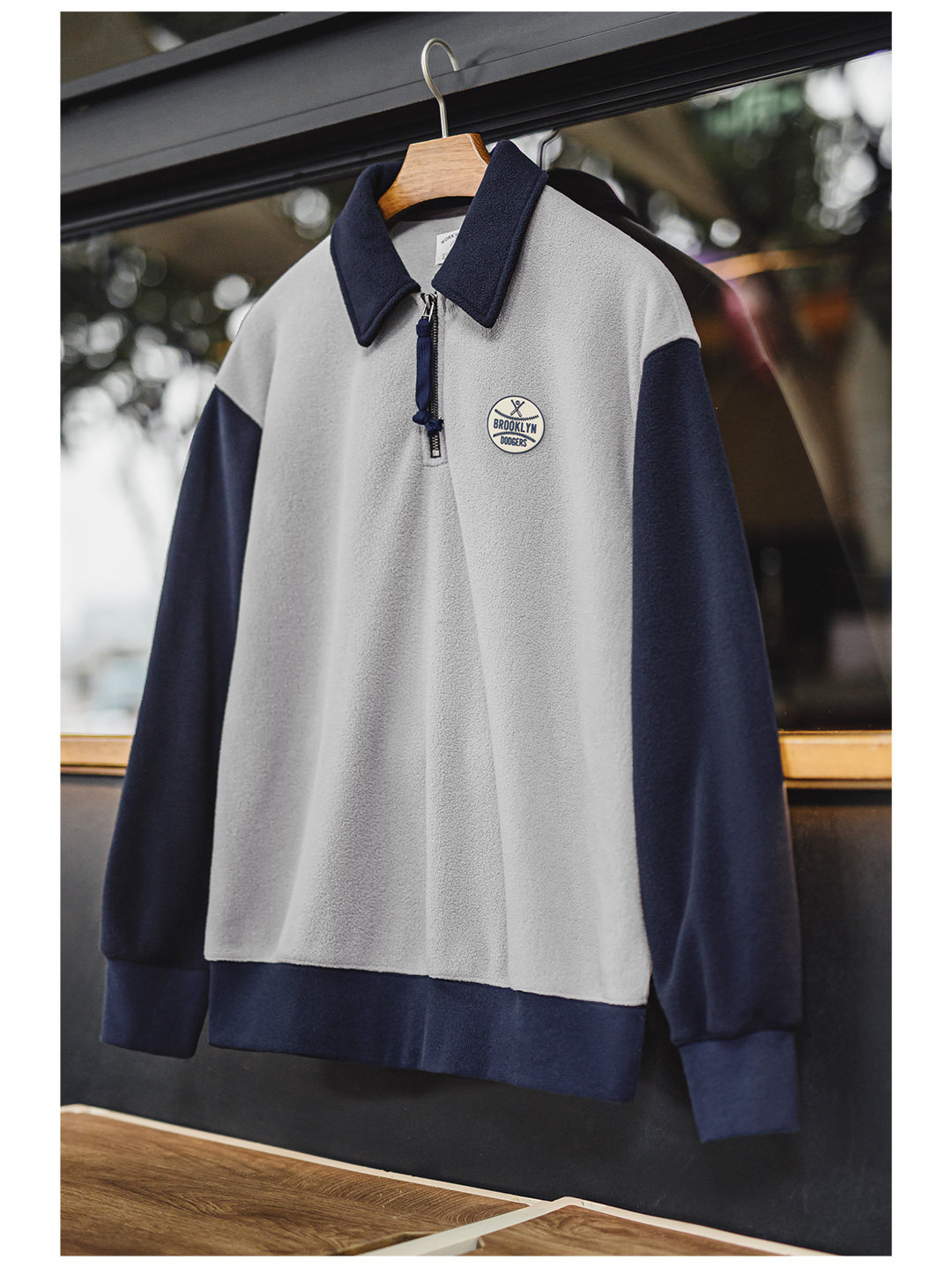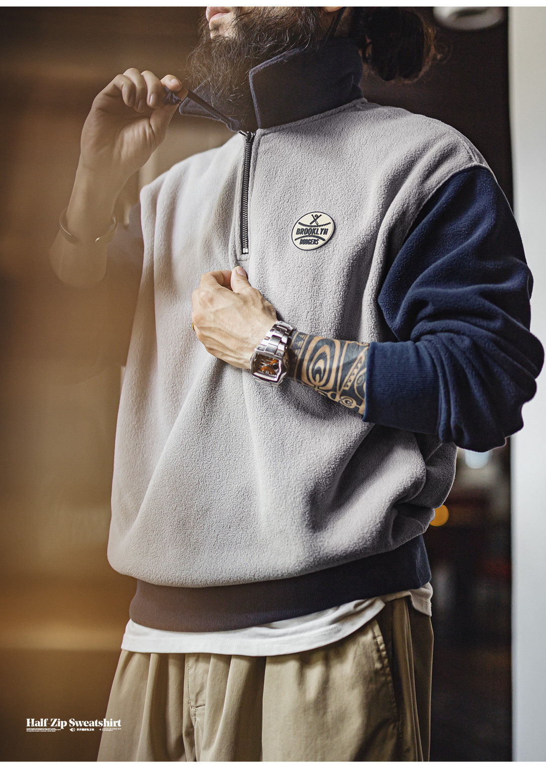 马登工装美式摇粒绒半开襟卫衣学院风polo领撞色套头保暖外套男春