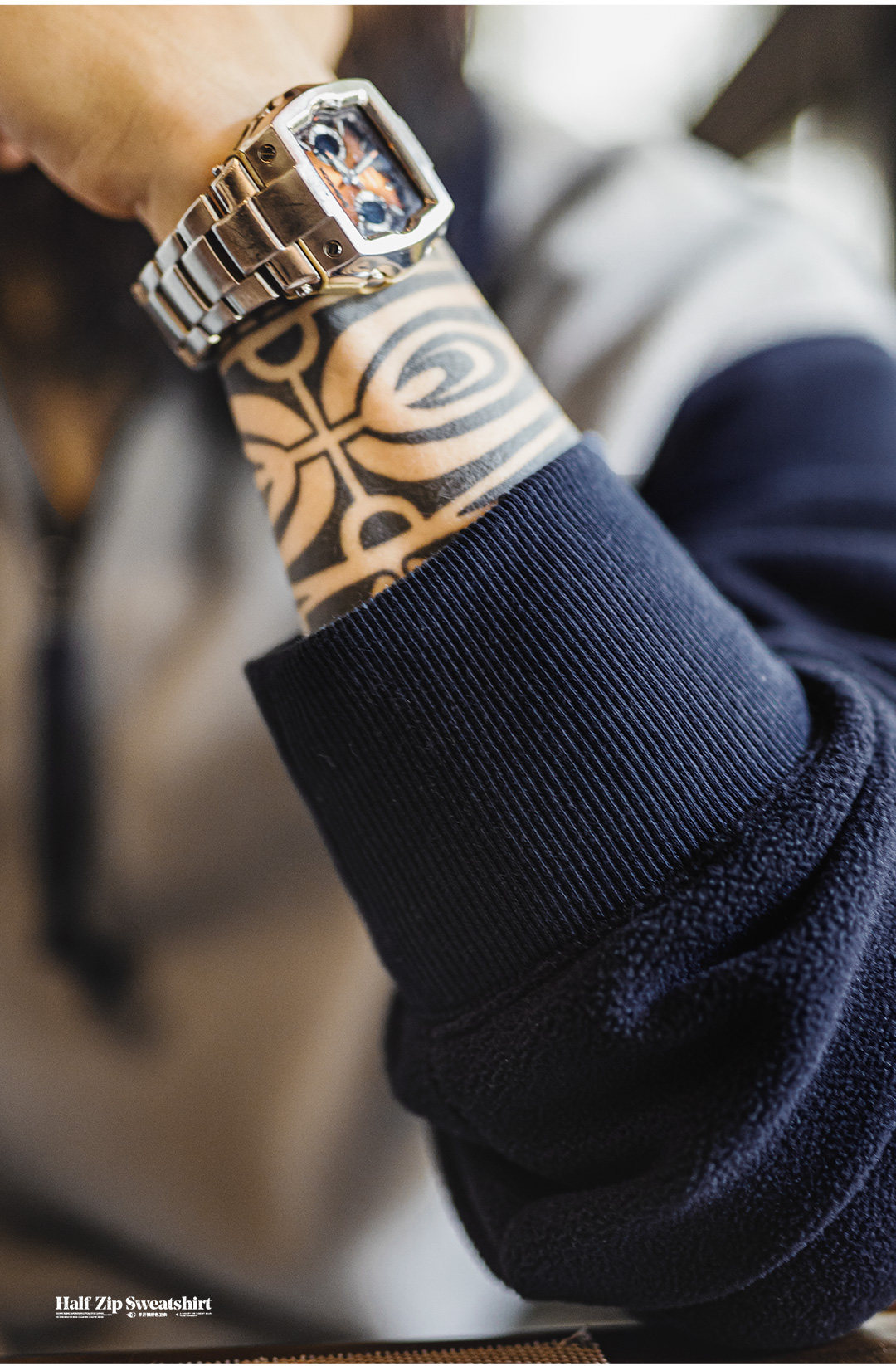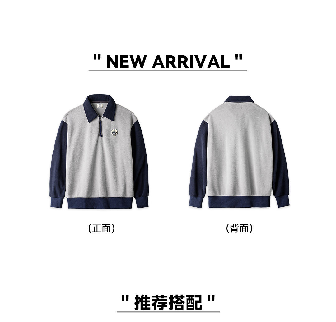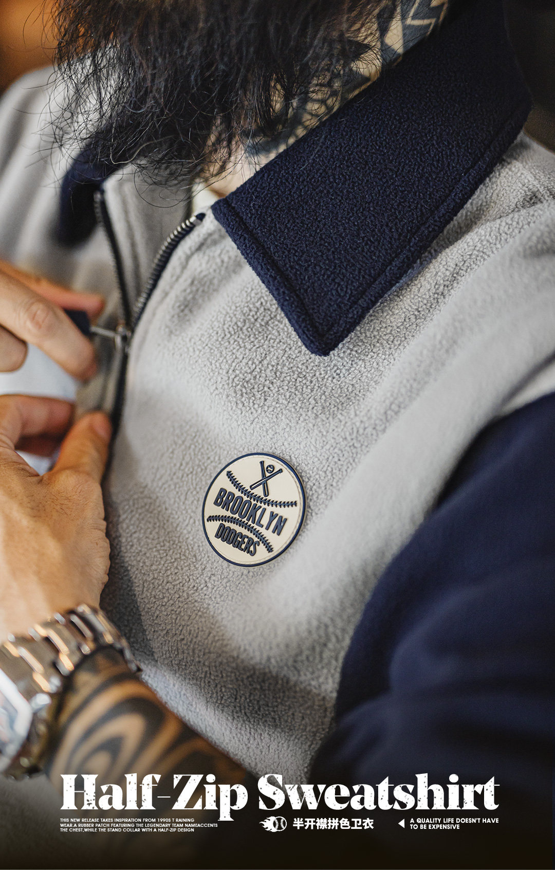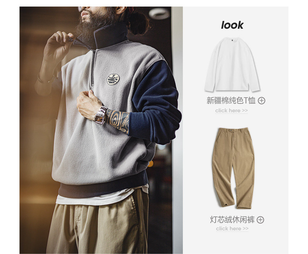 马登工装美式摇粒绒半开襟卫衣学院风polo领撞色套头保暖外套男春