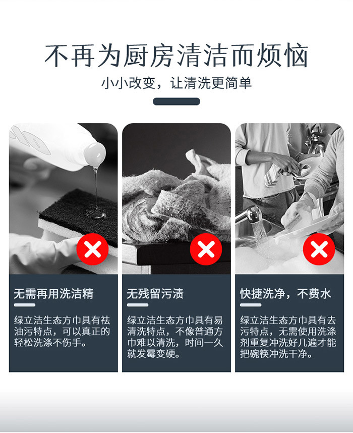 【绿立洁黑科技洗碗布】厨房不沾油不掉毛抹布清洁布百洁布ZZSH009