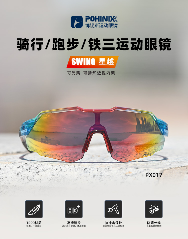 POHINIX博铌斯防风山地骑行眼镜马拉松越野跑步眼镜运动眼镜PX017