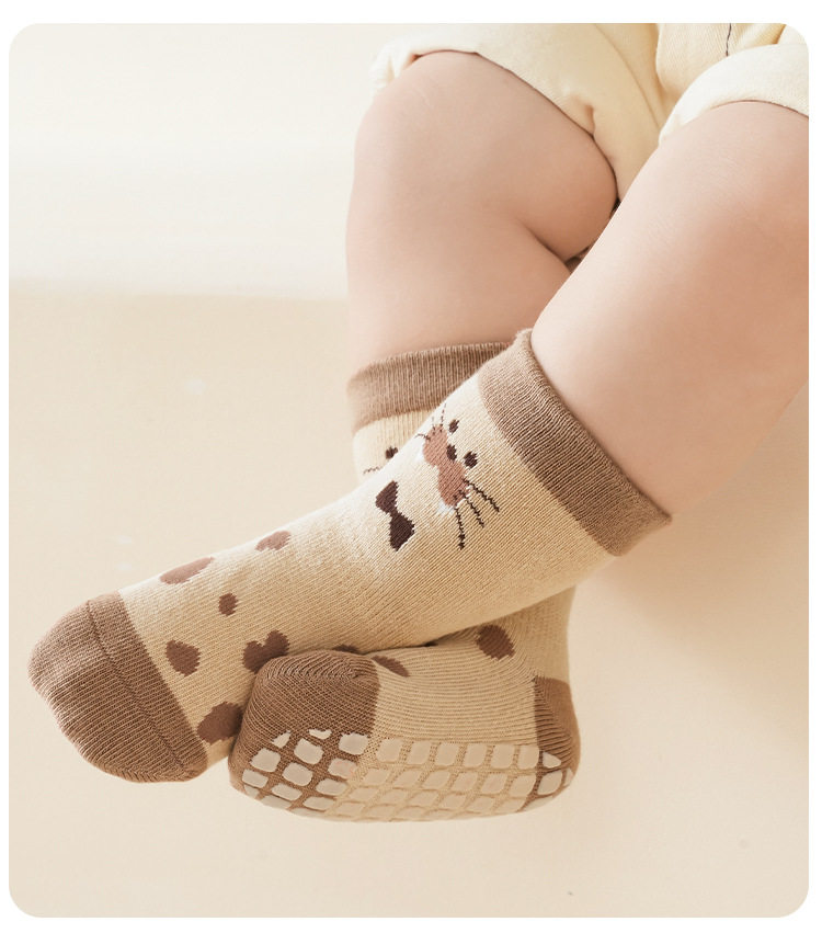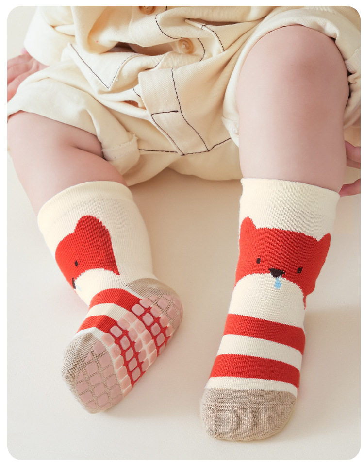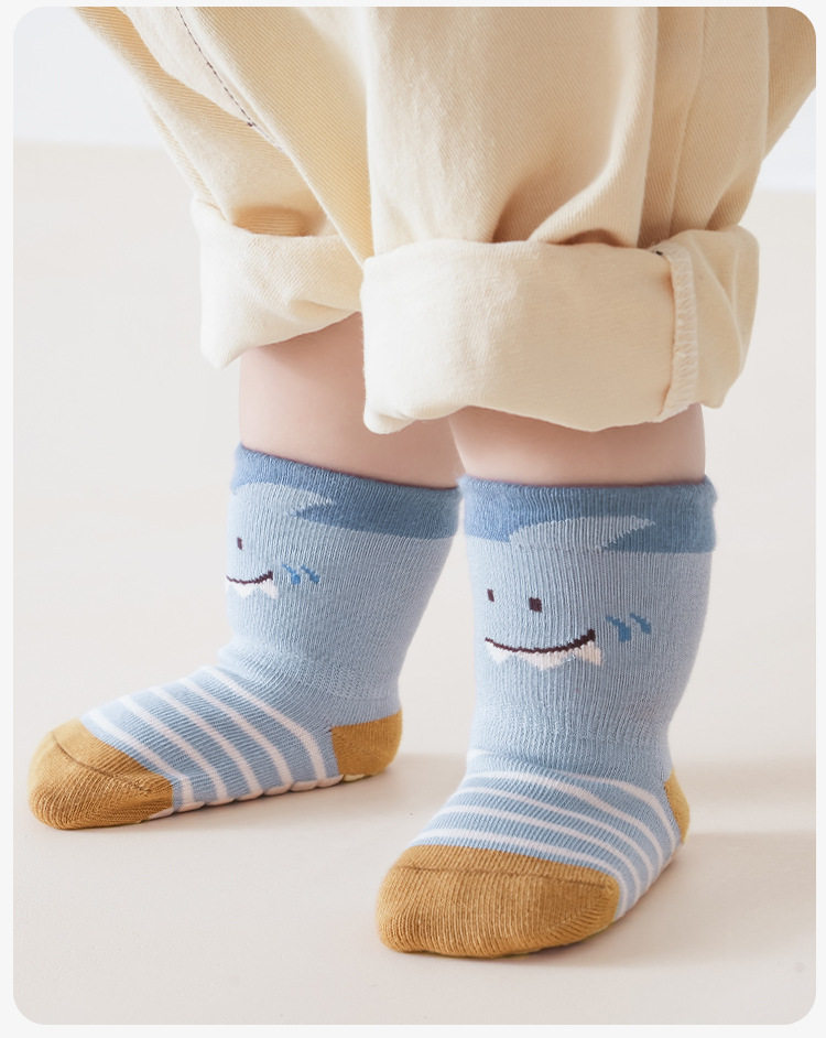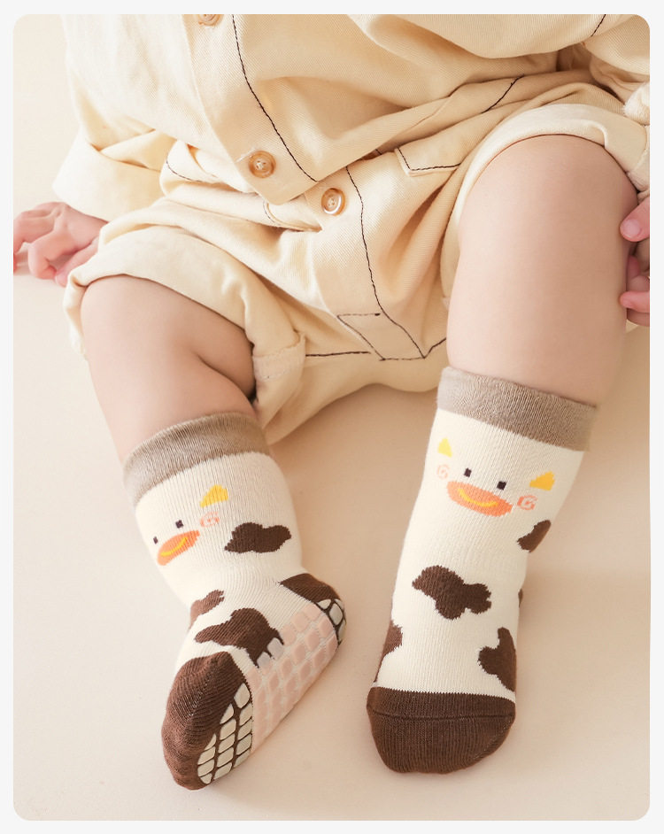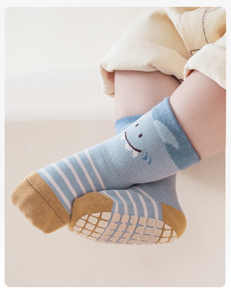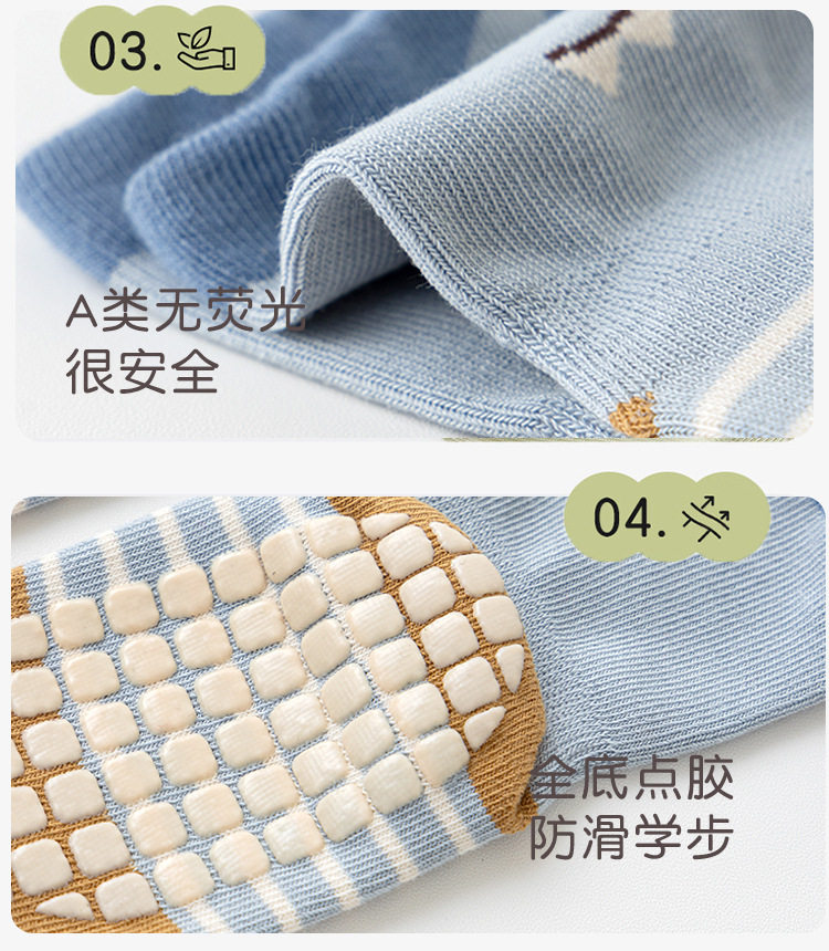 【3双装】春季新品宝宝地板袜室内精梳棉防滑松口无骨卡通婴幼儿早教学步袜