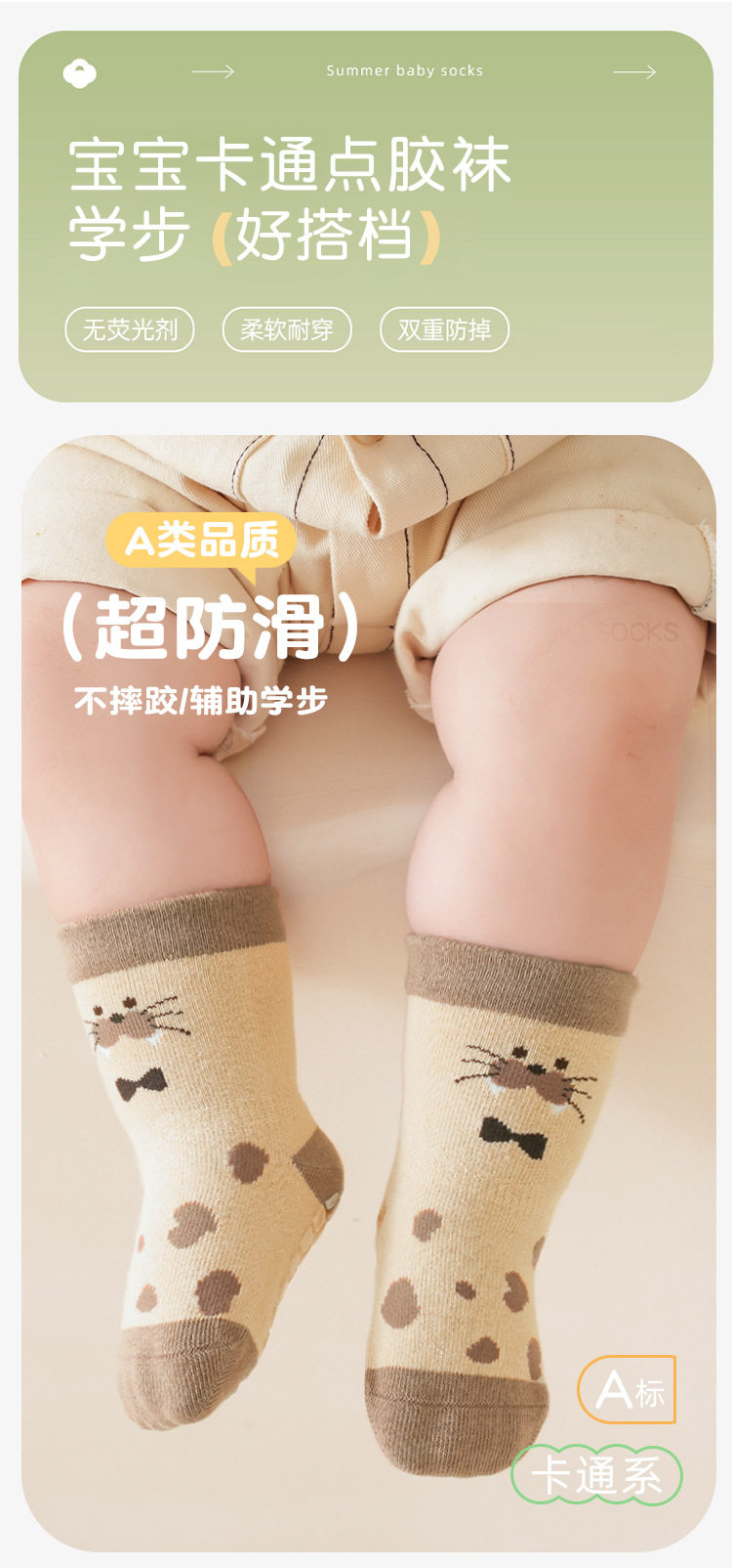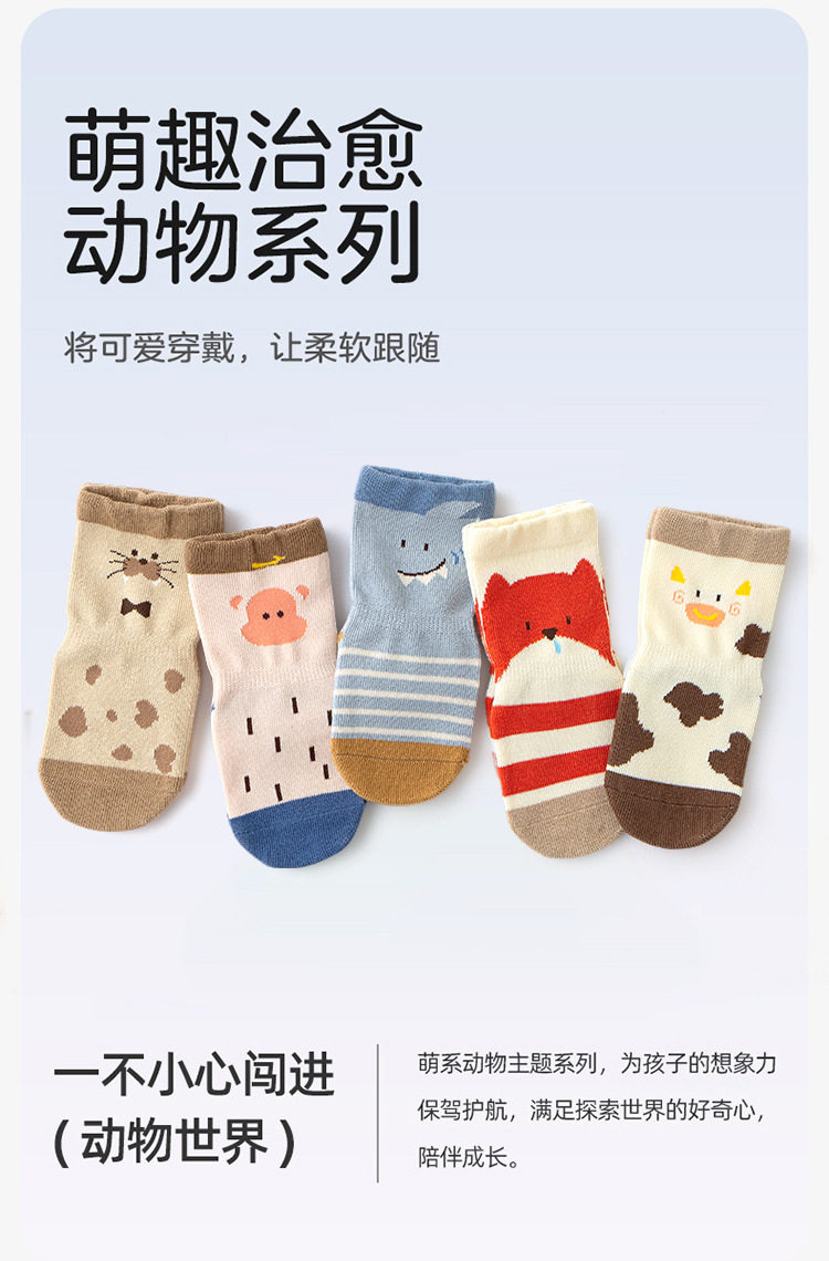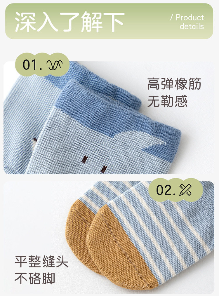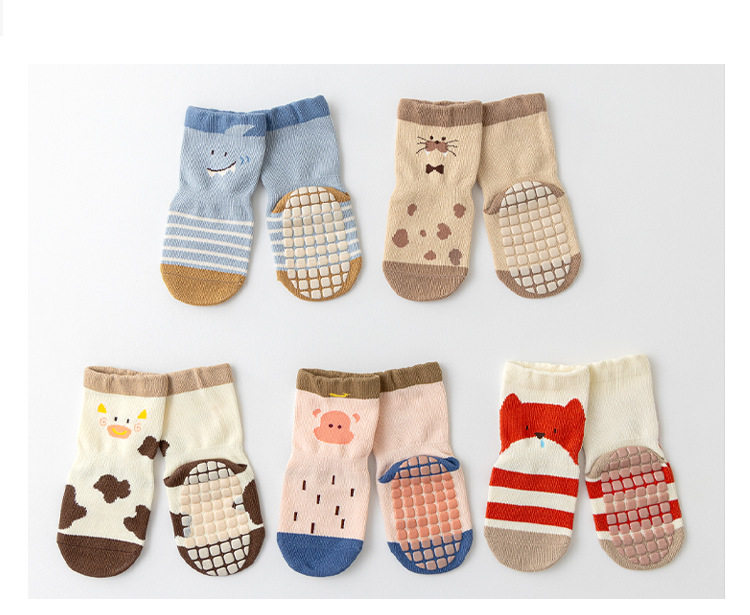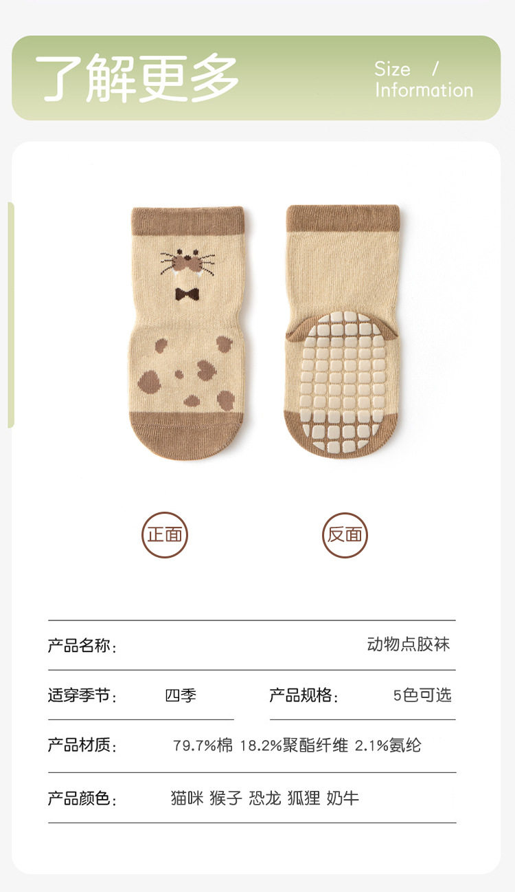 【3双装】春季新品宝宝地板袜室内精梳棉防滑松口无骨卡通婴幼儿早教学步袜