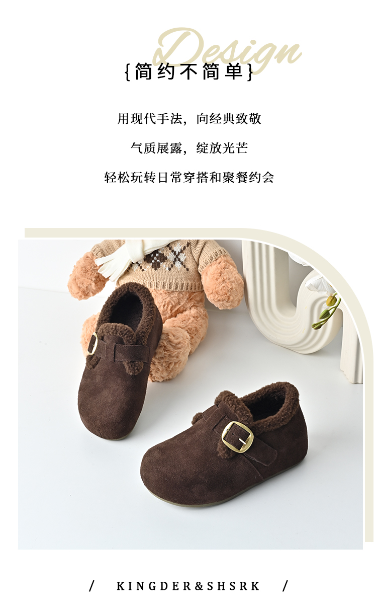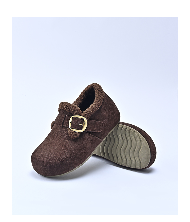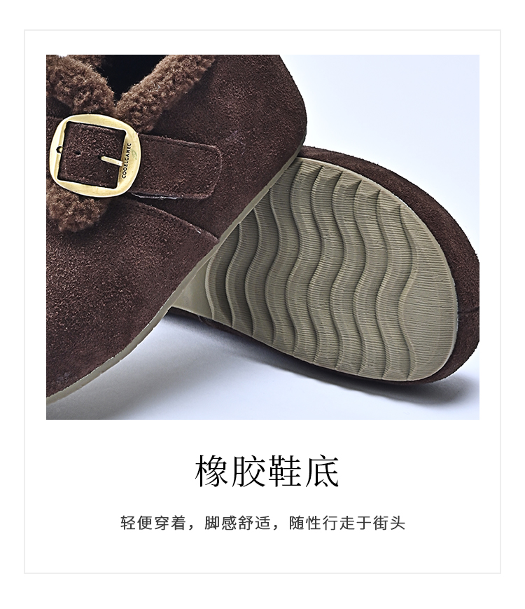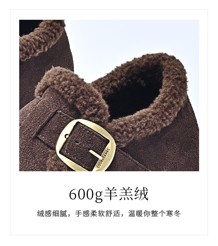 经典鲨2025年专柜新品牛皮革加绒加厚保暖平底舒适勃肯鞋女KW392-558065
