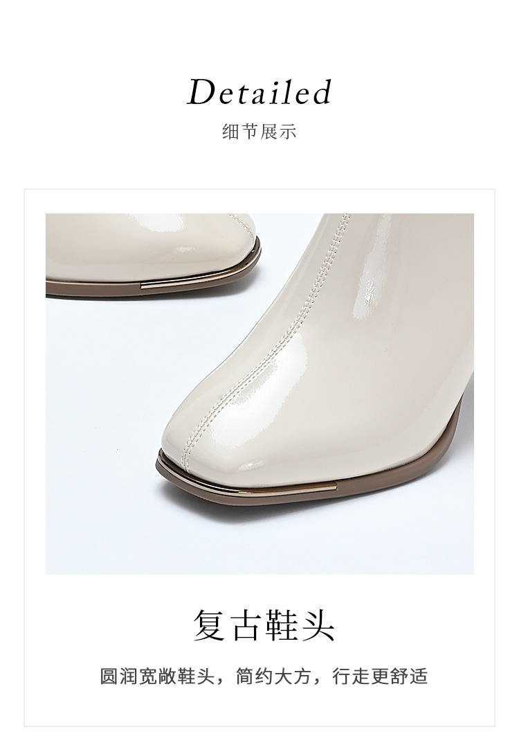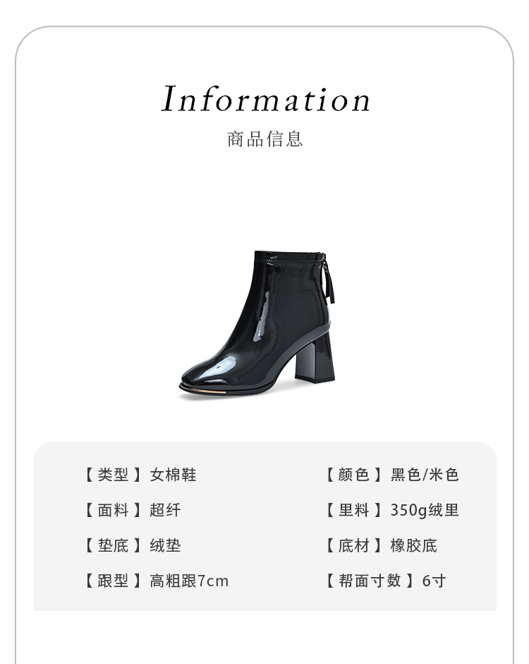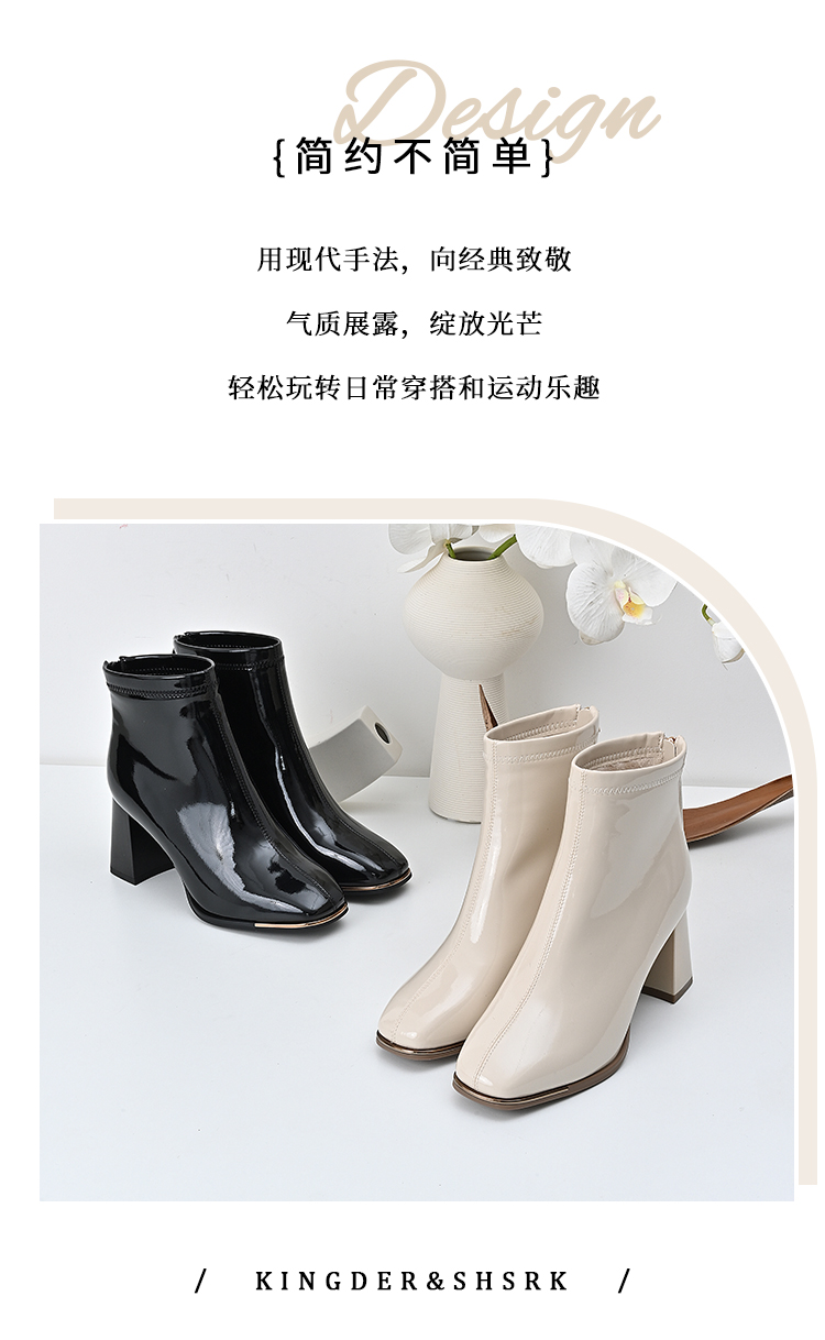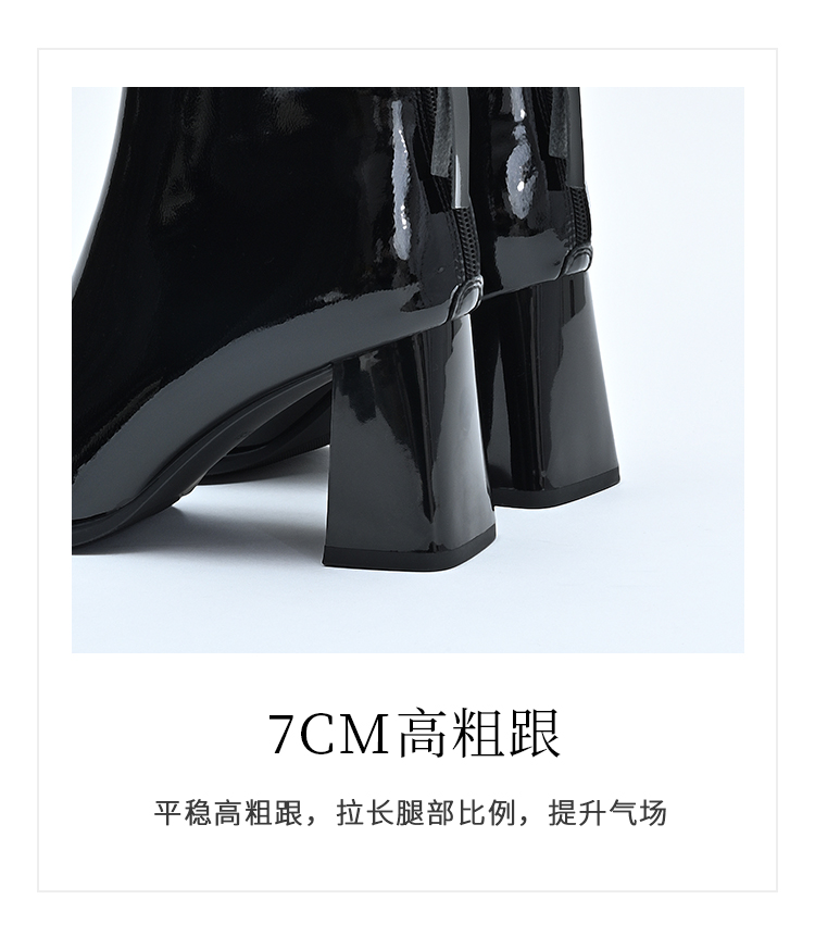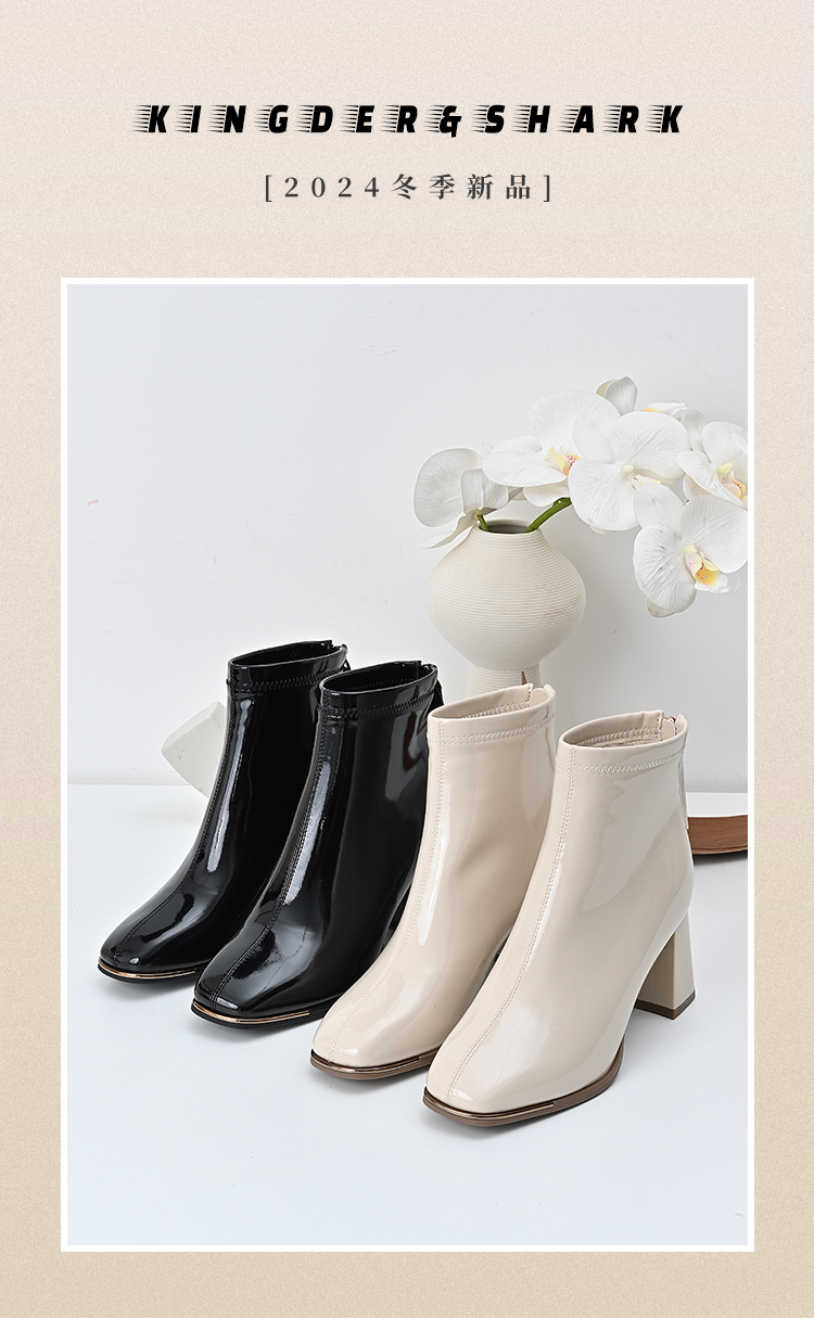 经典鲨2024冬季新款时尚方头加绒保暖高粗跟气质时装短靴女KC19-D58261