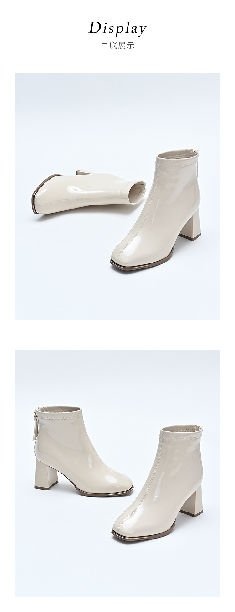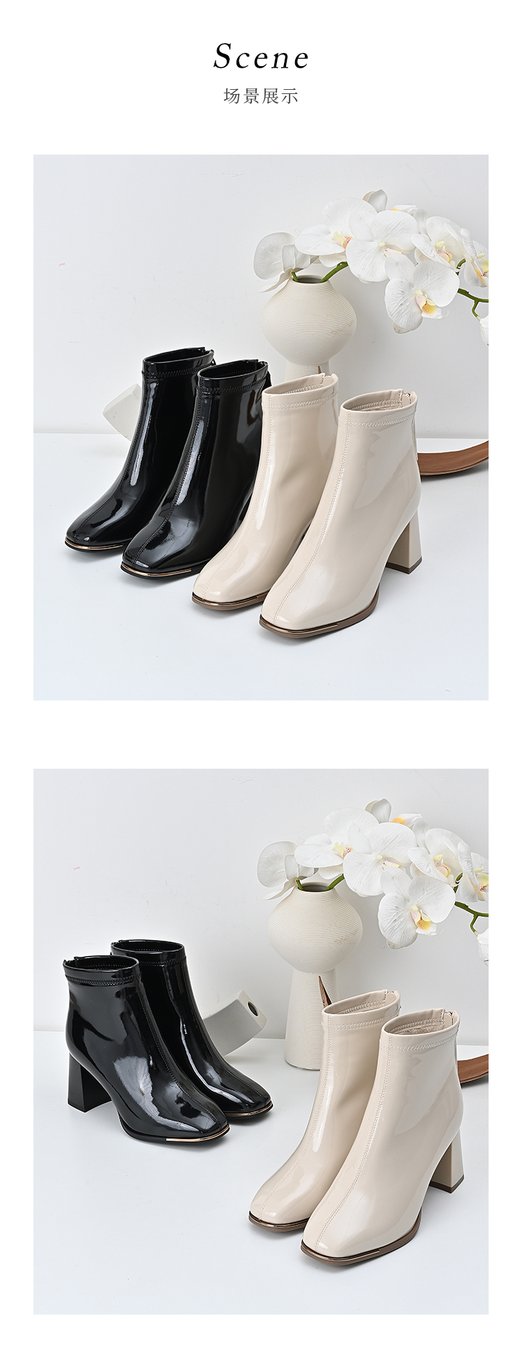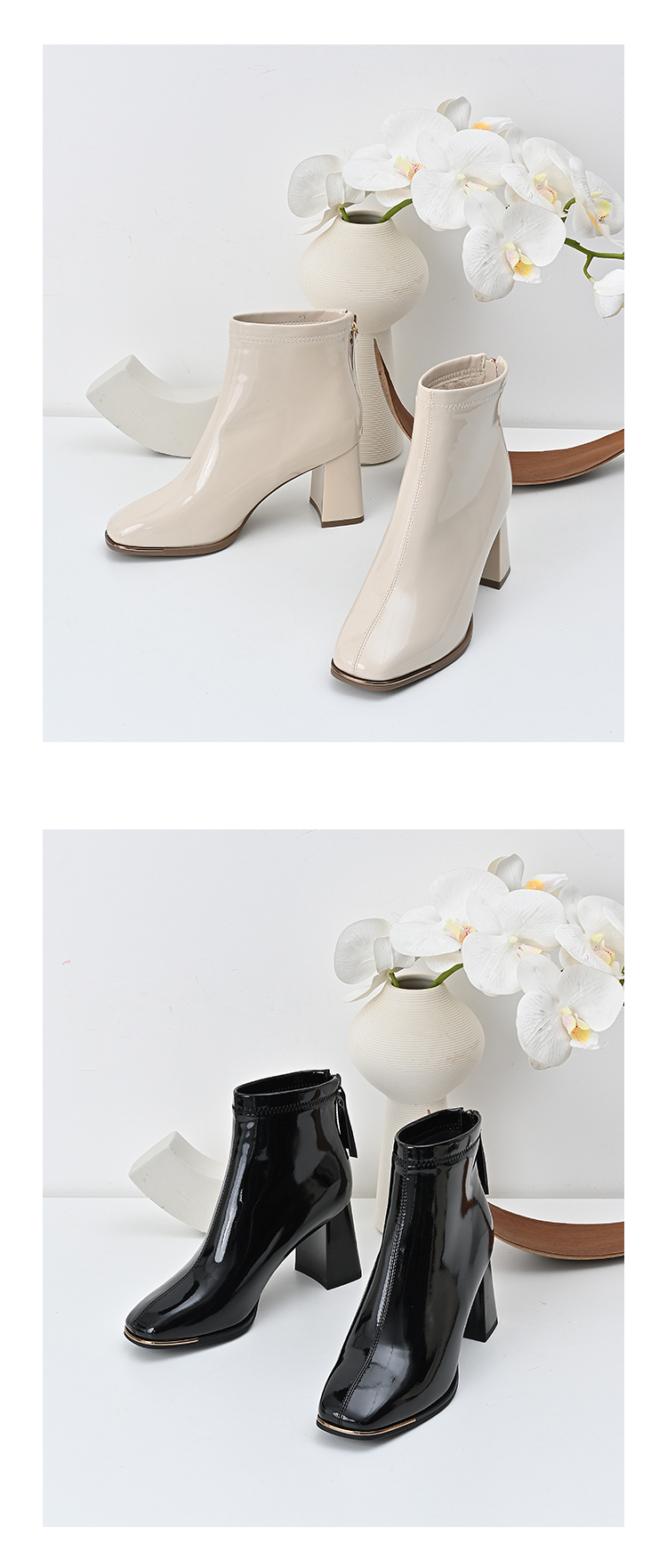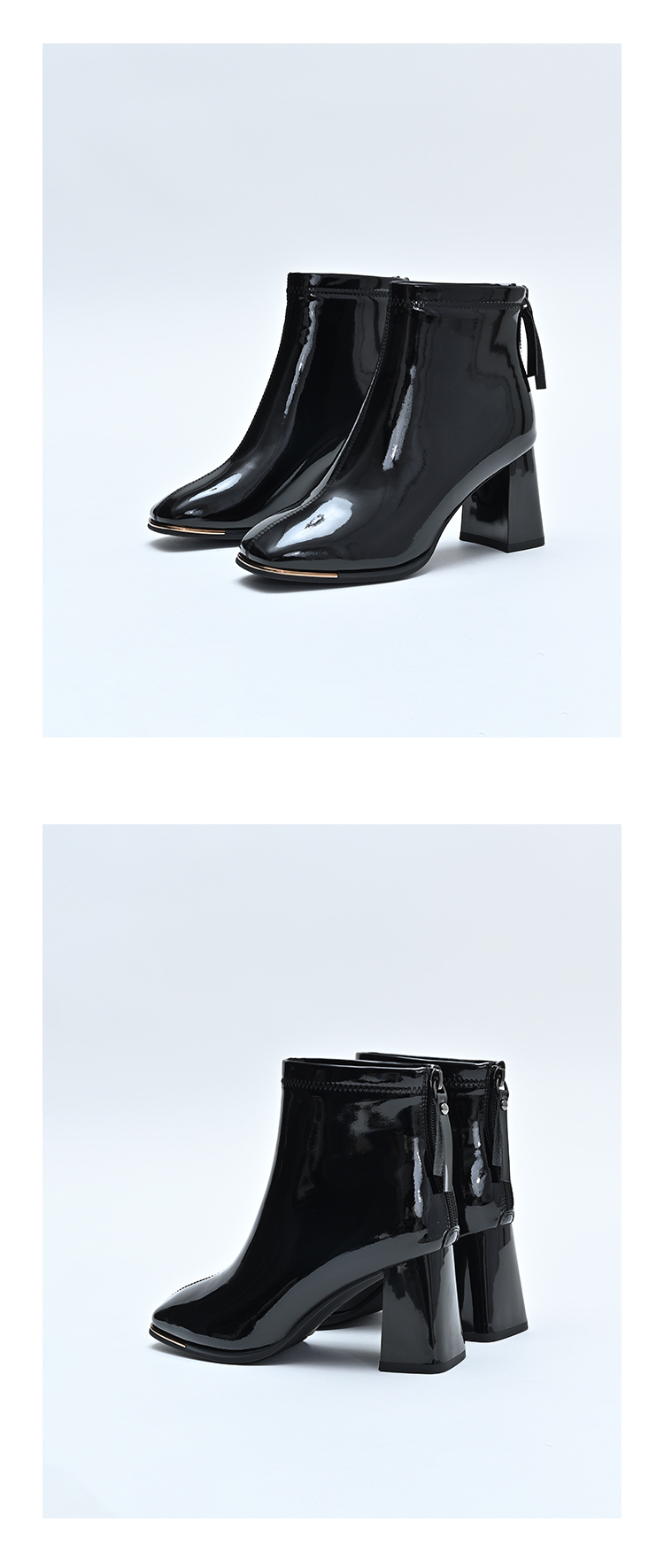 经典鲨2024冬季新款时尚方头加绒保暖高粗跟气质时装短靴女KC19-D58261