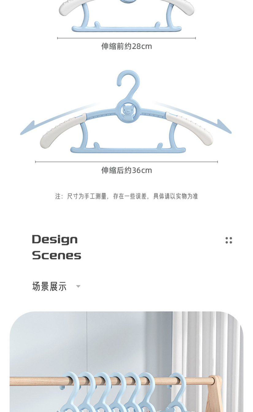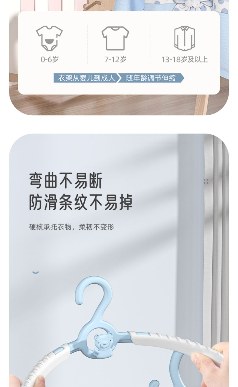 【30个装儿童衣架❗️多功能可伸缩】防滑无痕稳固耐用伸缩翼,承重力好连挂设计,微弧肩设计高颜值,清新无味,晾衣架新生儿宝宝专用衣服撑