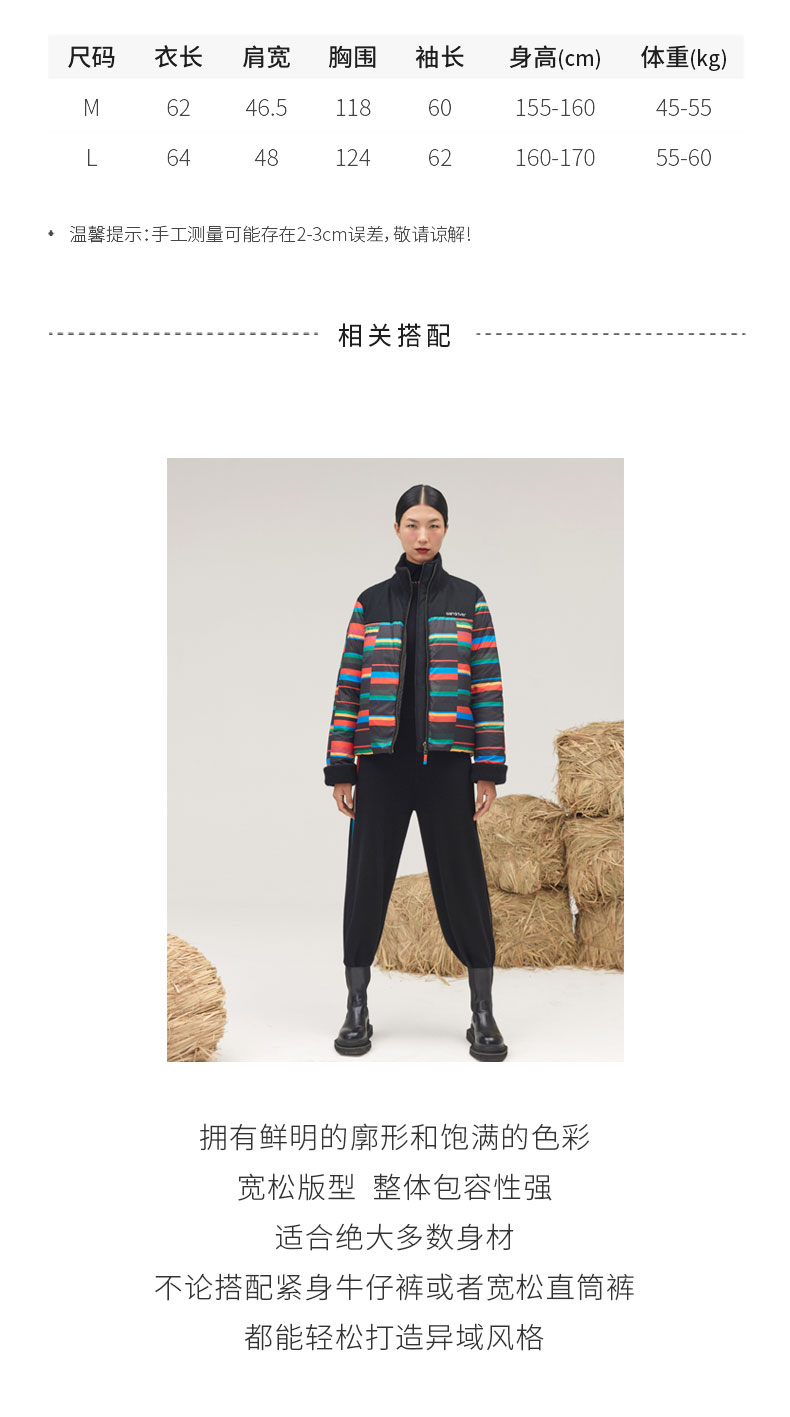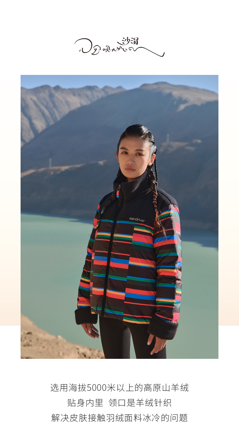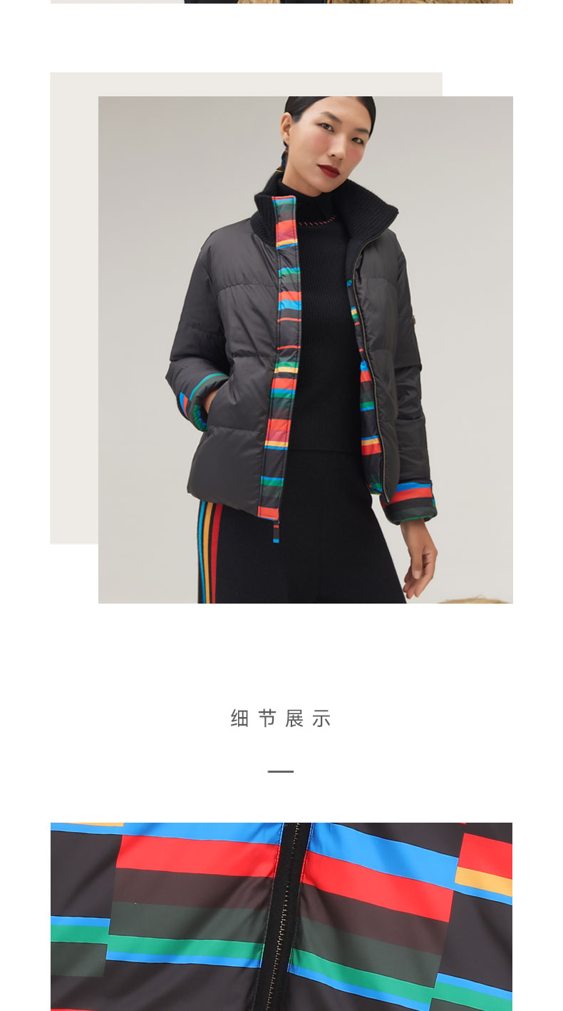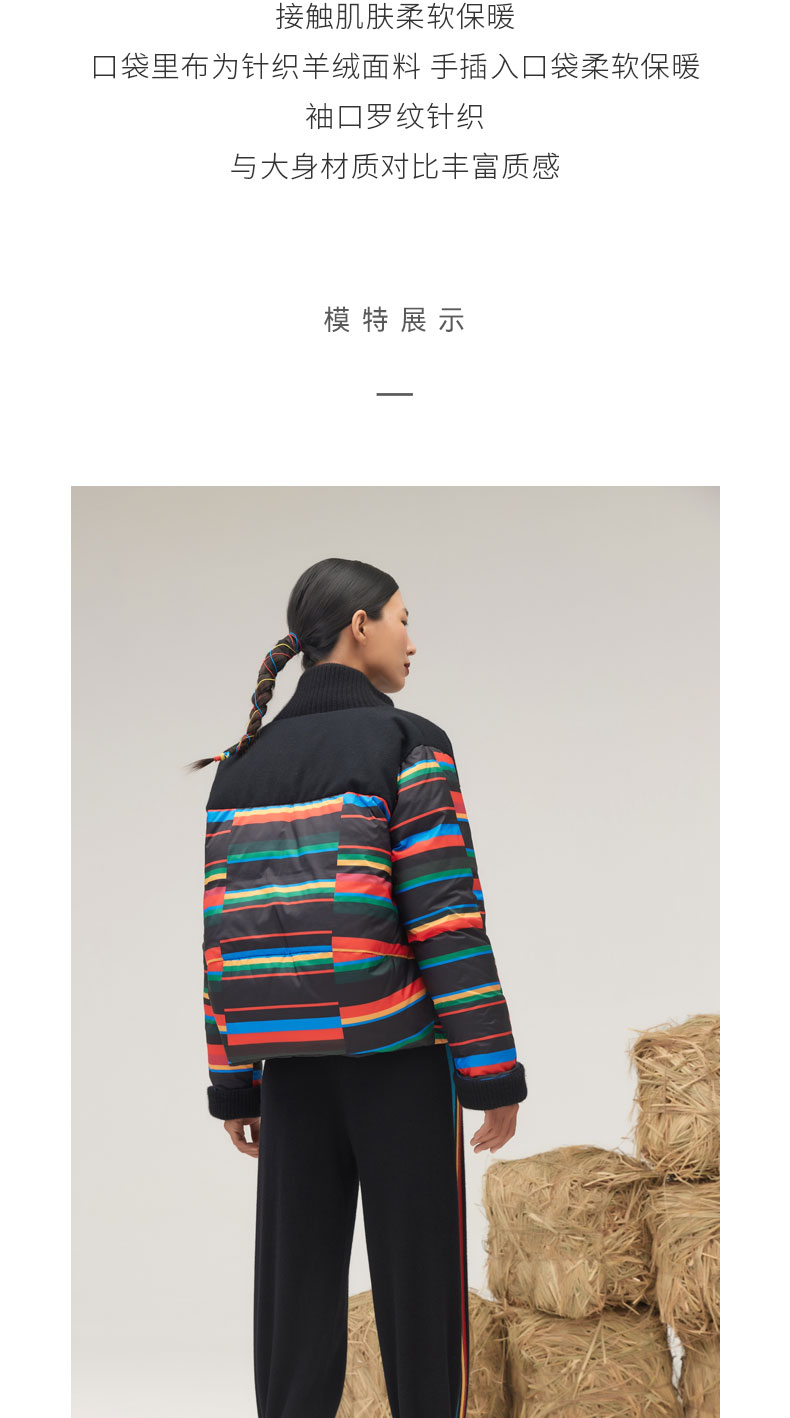 羊绒针梭相拼两面穿彩条鹅绒服SJF95W263W
