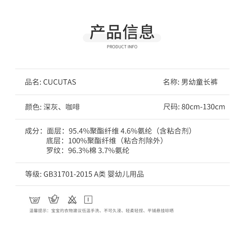 Cucutas男幼童长裤CY25WIW528深灰/咖啡(90#-120#)