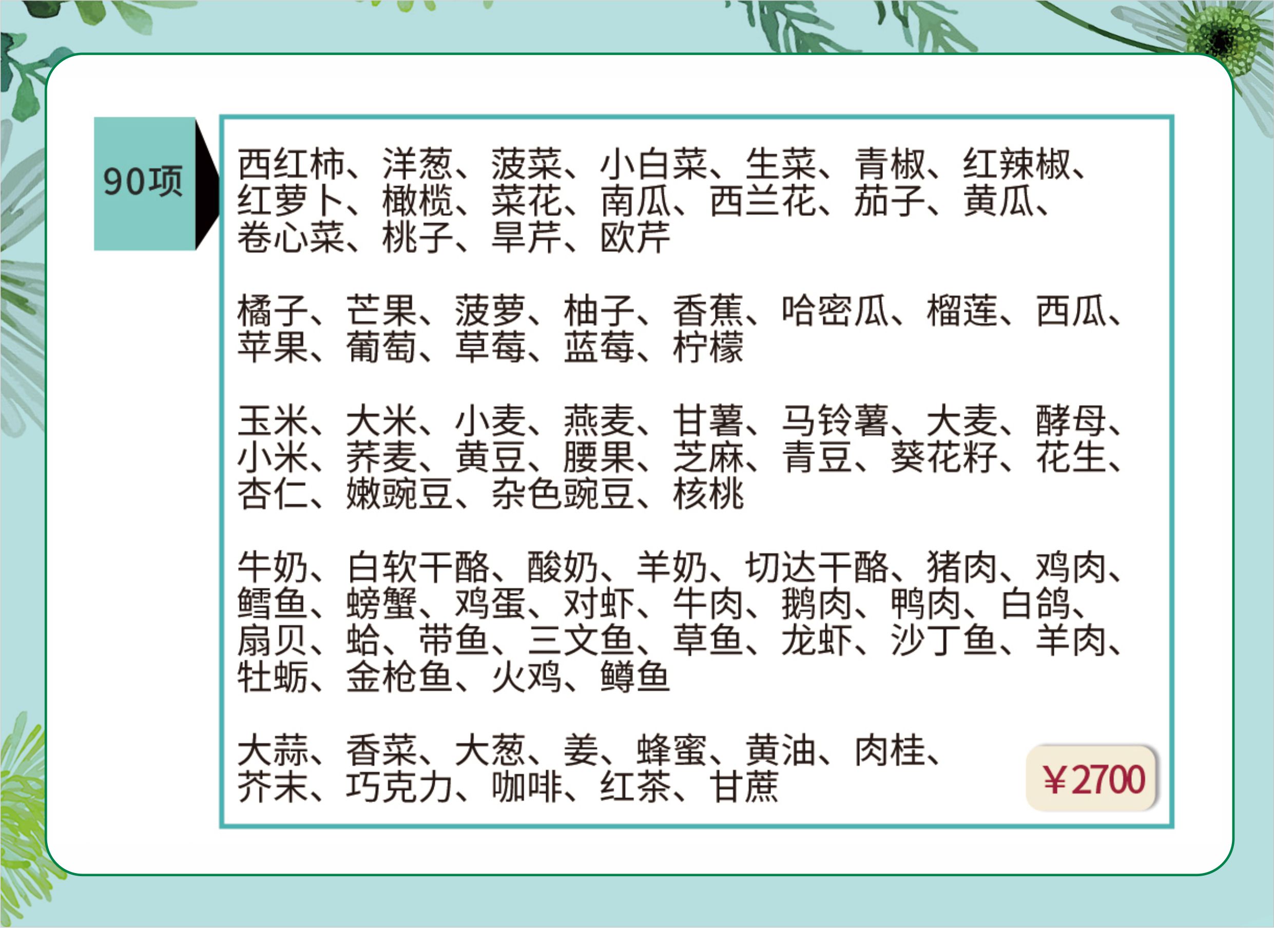 慢性食物过敏检测90项 买一赠一