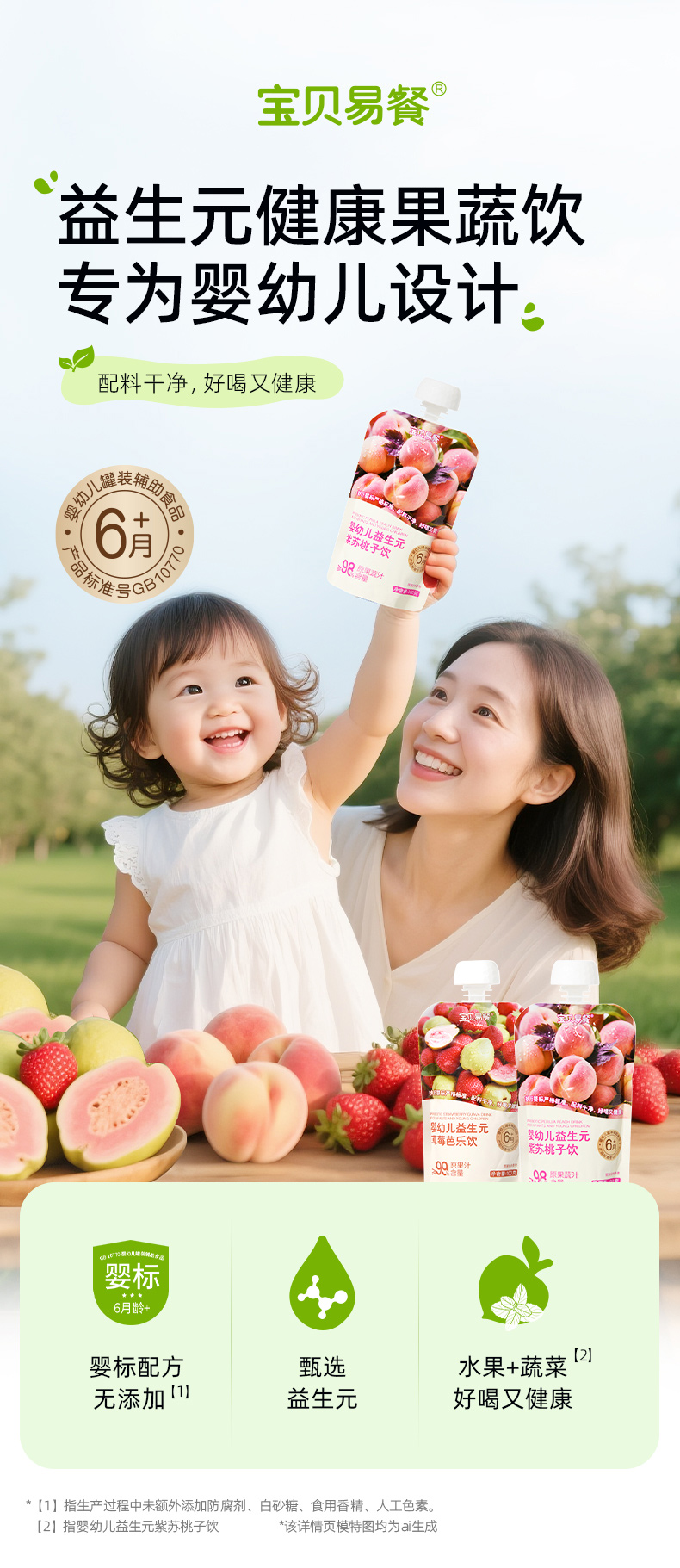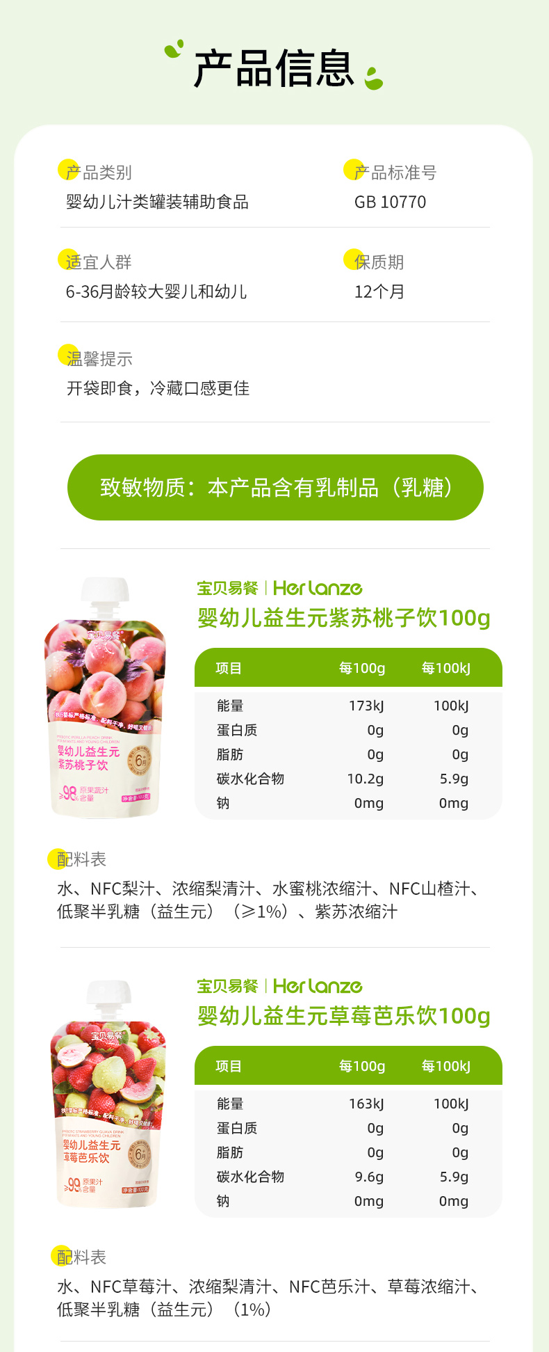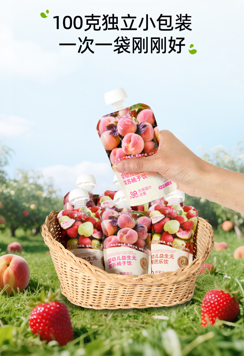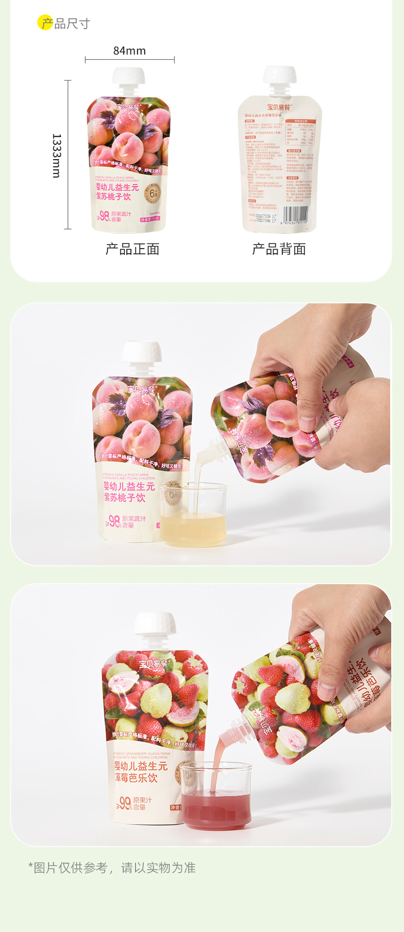 宝贝易餐婴幼儿益生元紫苏桃子饮100g/益生元草莓芭乐饮100g
