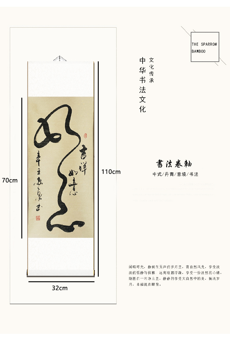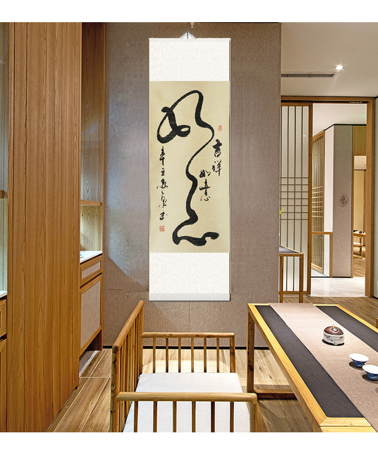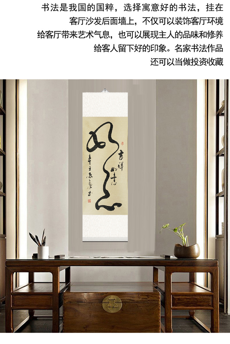 吉祥如意茶室书房玄关书法竖版禅意字画客厅装饰挂画
