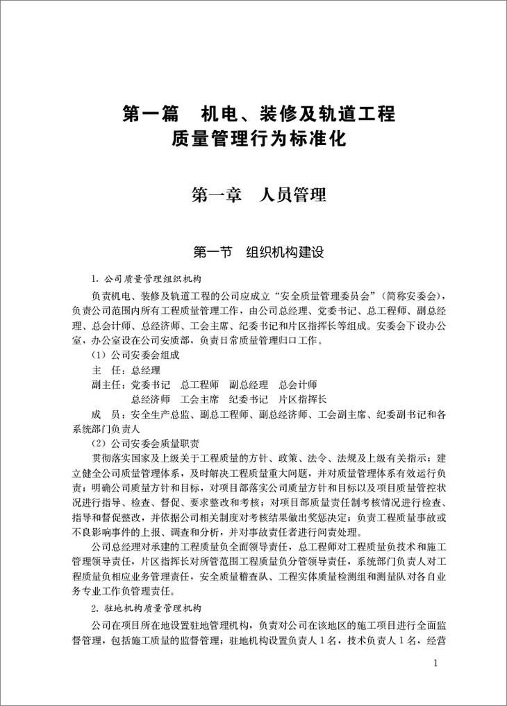 第一篇 机电、装修及轨道工程质量管理行为标准化
