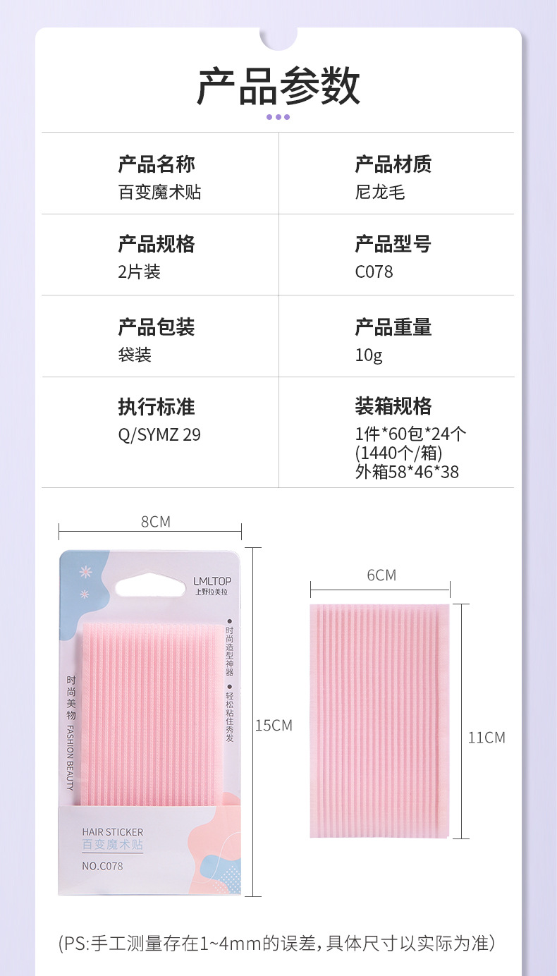 拉美拉 2片装刘海贴 魔法贴刘海工具碎发发贴 美发便携蓬松干发自粘贴