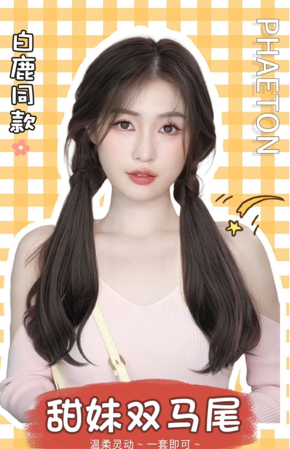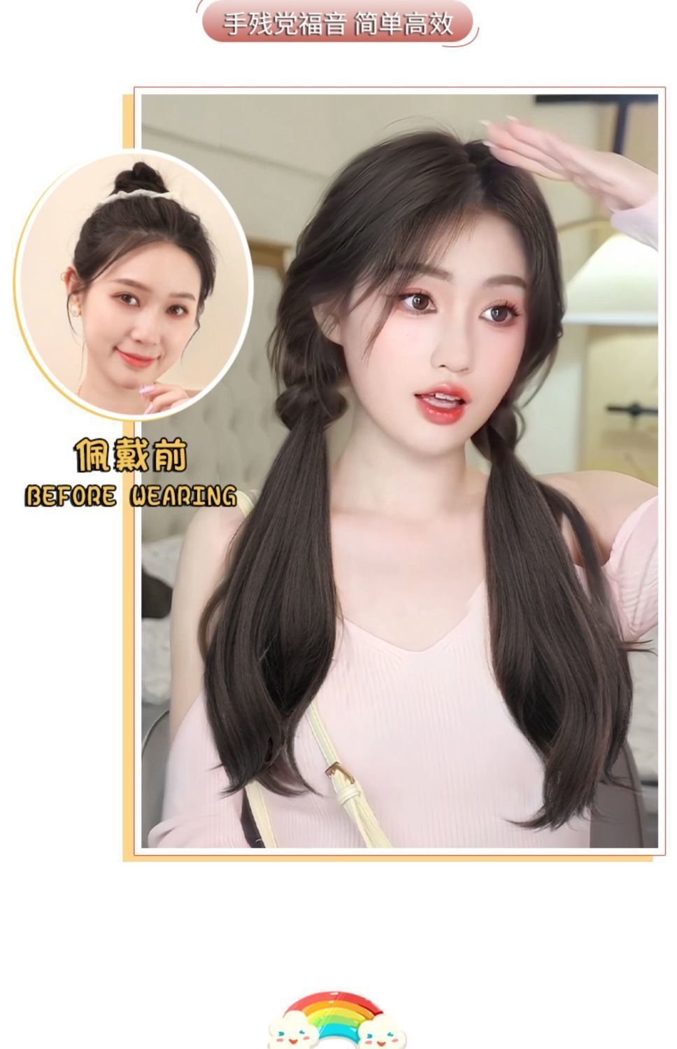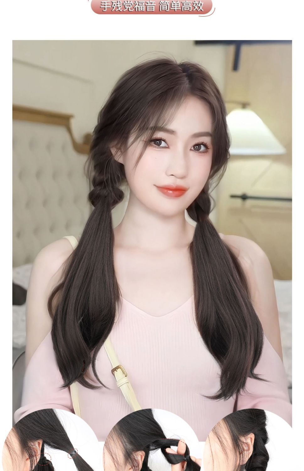 双马尾长发辫子女自然麻花辫长马尾可扎马尾仿真发甜妹卷发双马尾