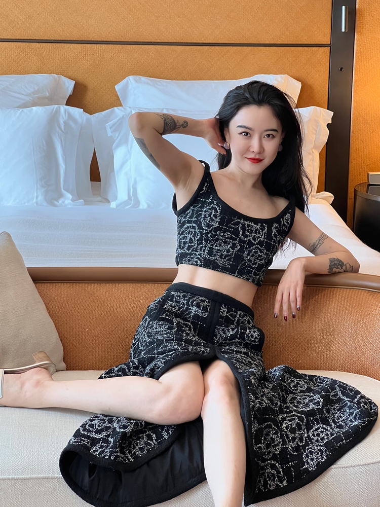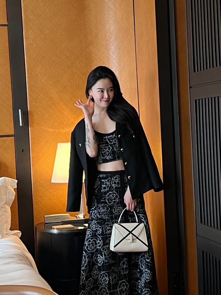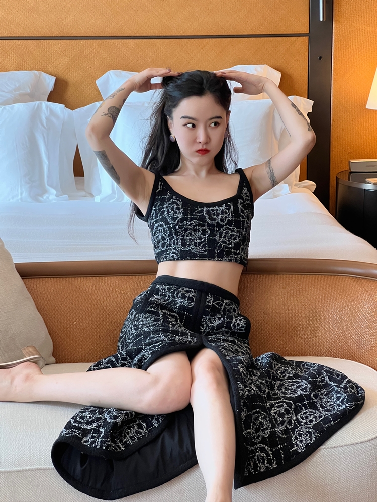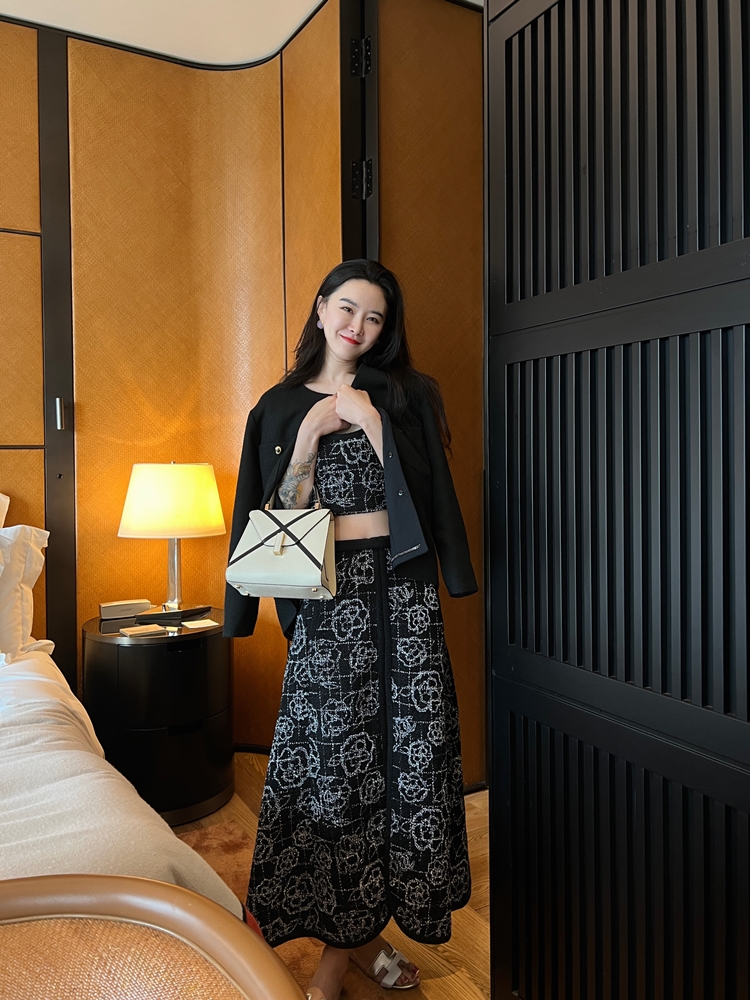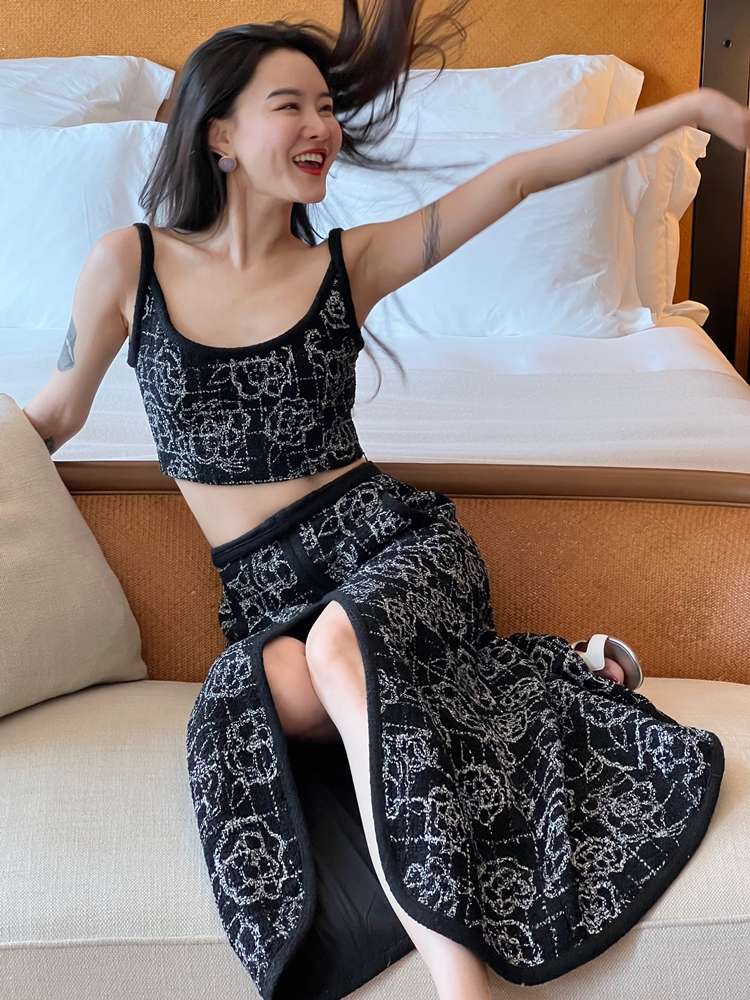 山茶花lady优雅黑银小香风傲娇长裙和背心