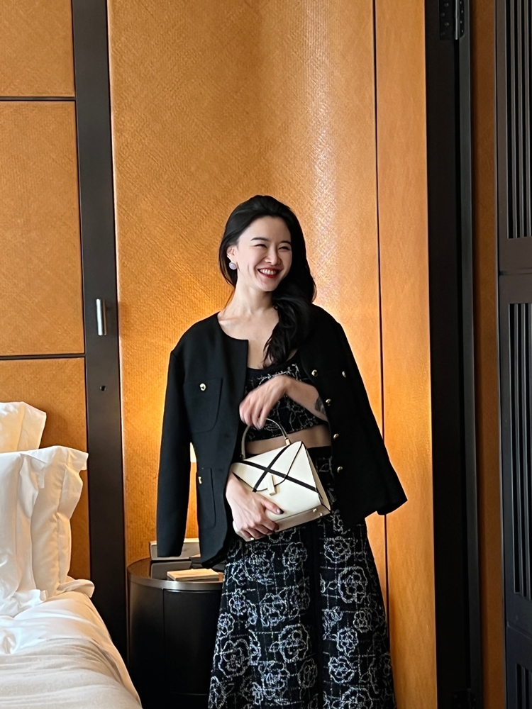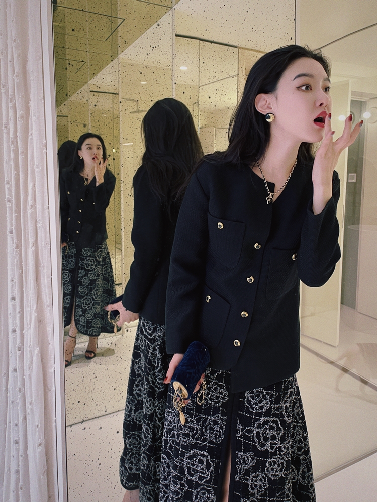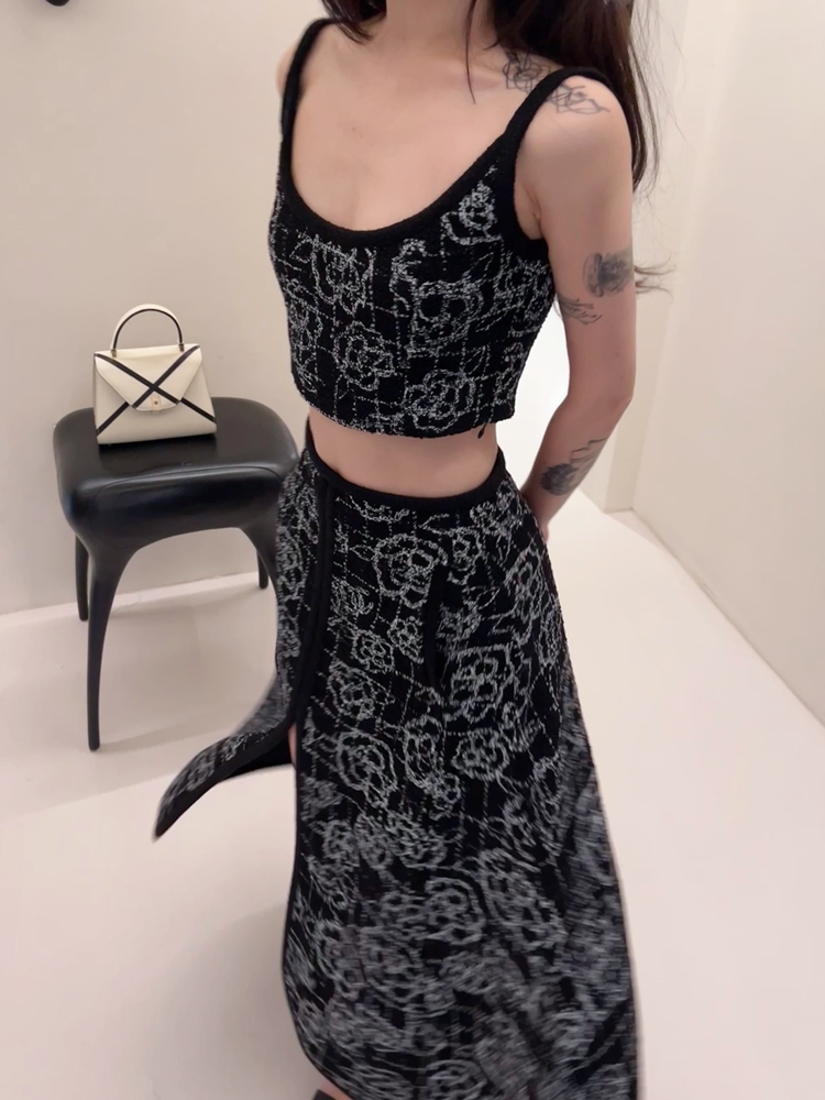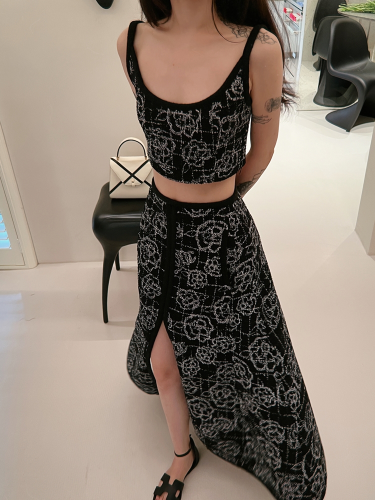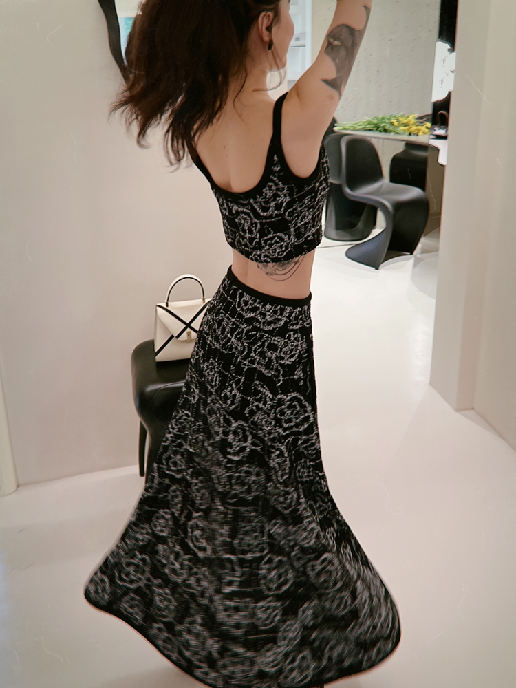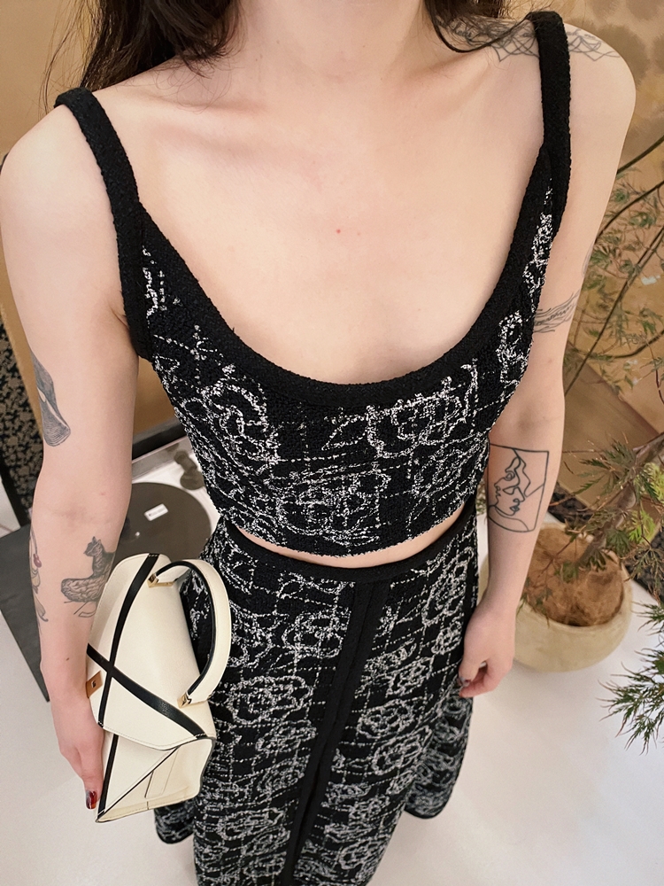 山茶花lady优雅黑银小香风傲娇长裙和背心