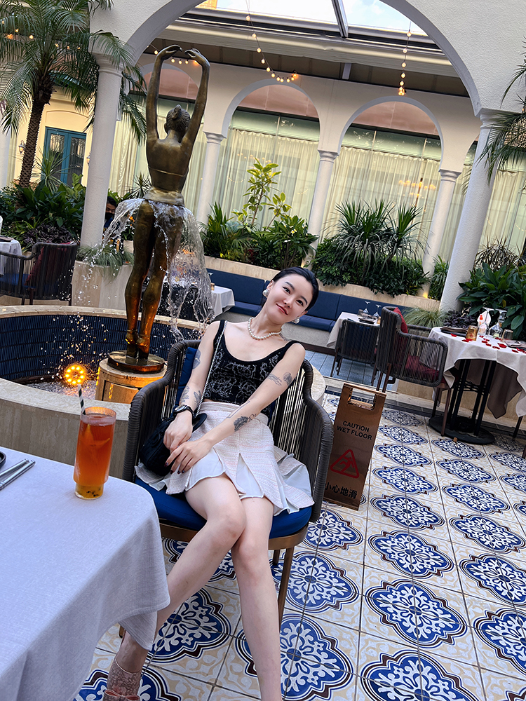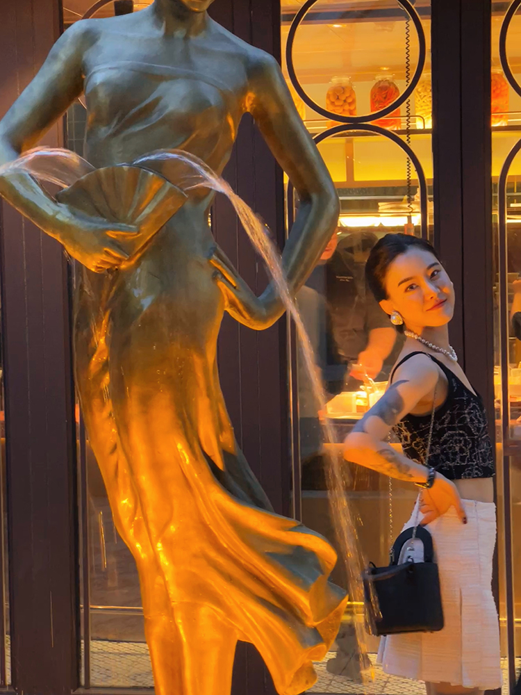 倩妮迪月亮nv王银白色小香风吊带包臀裙套装