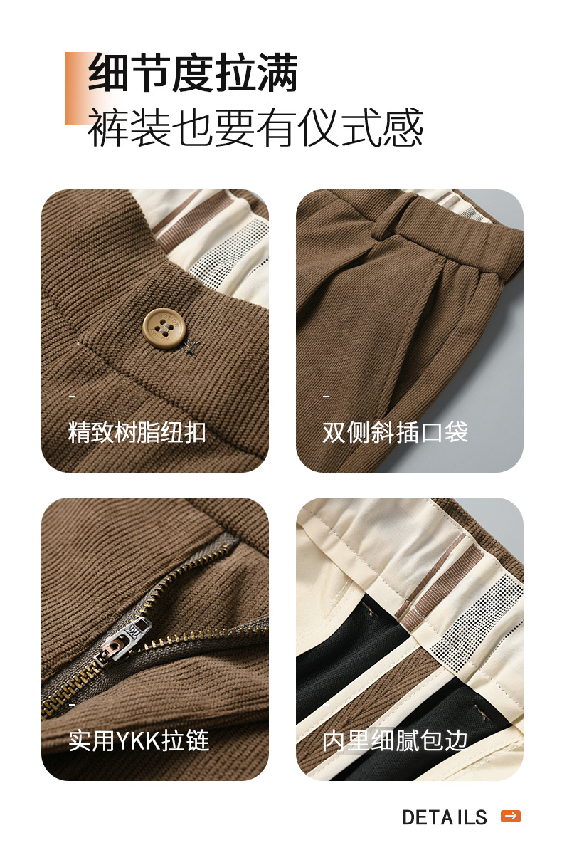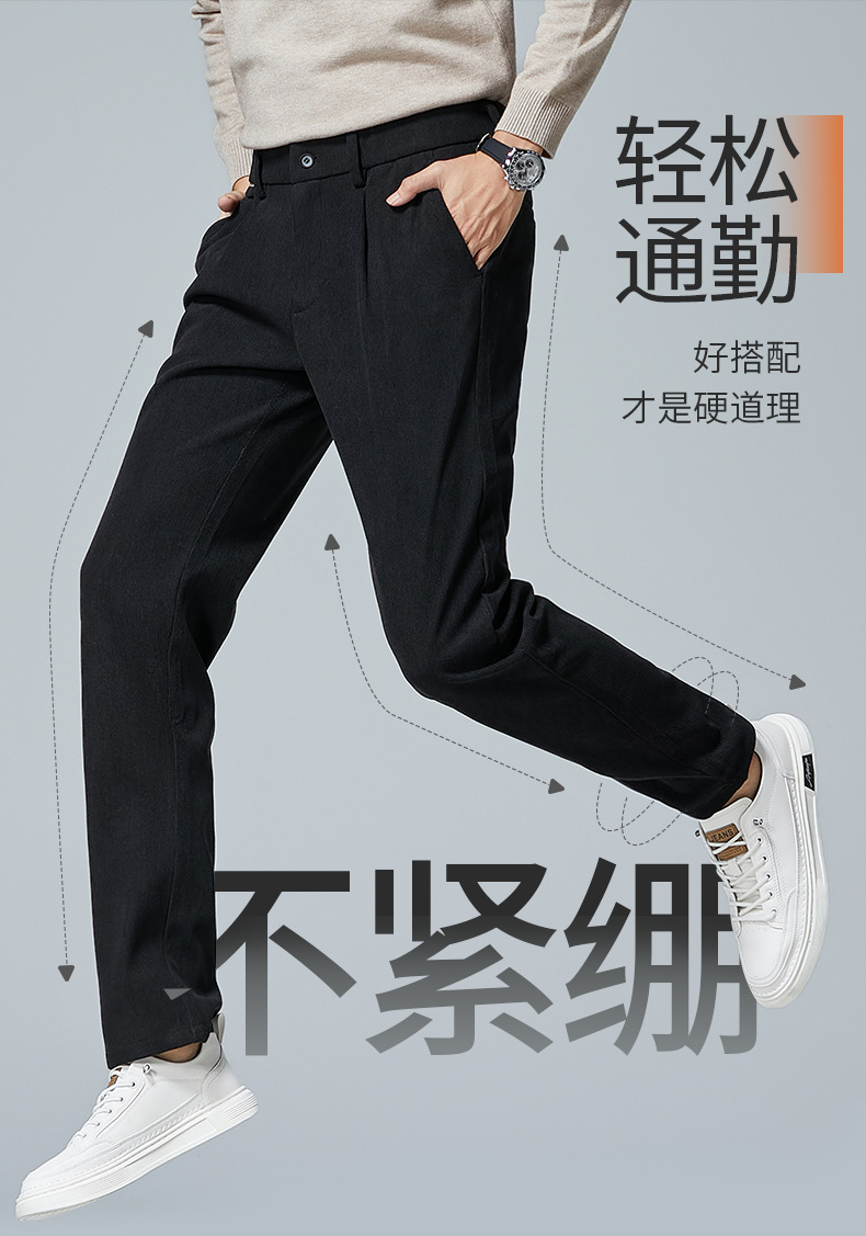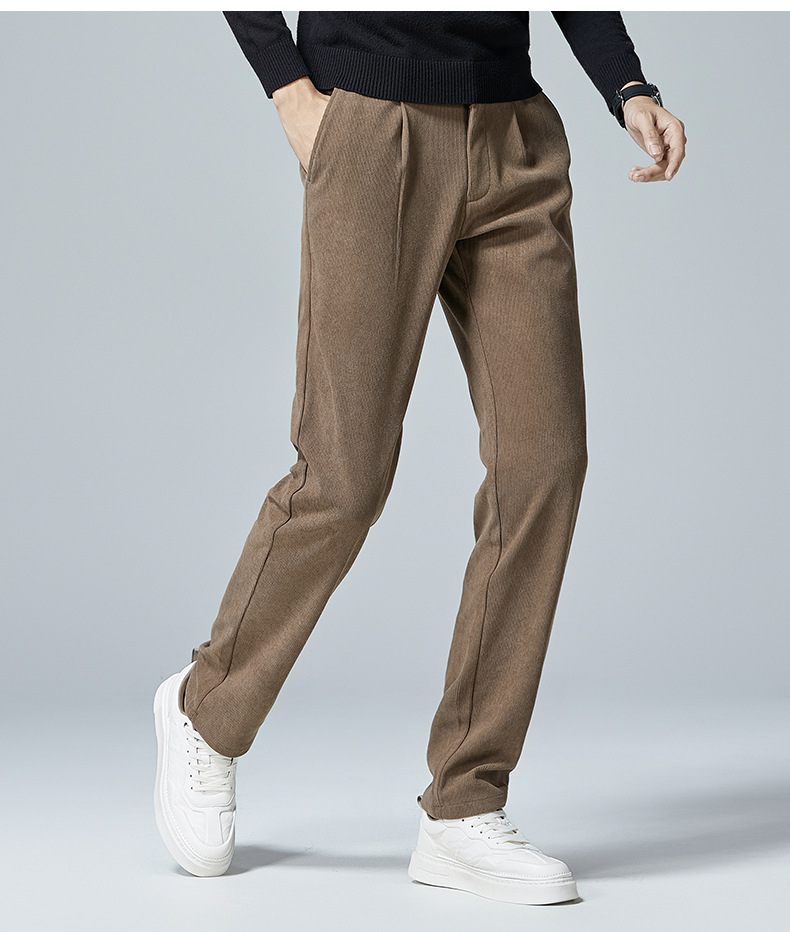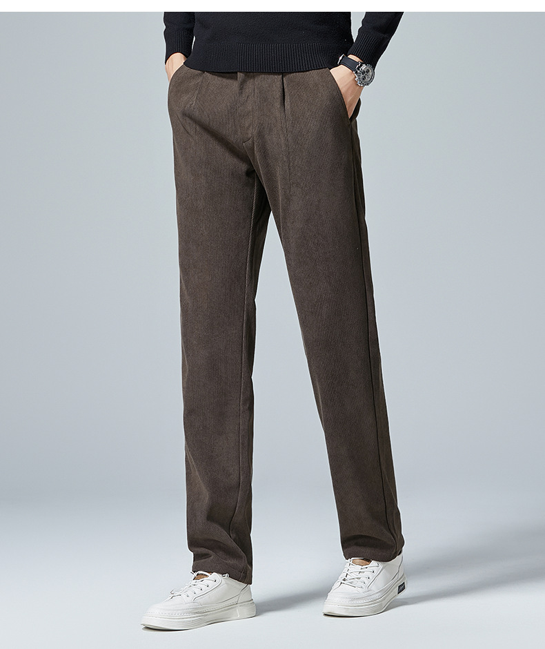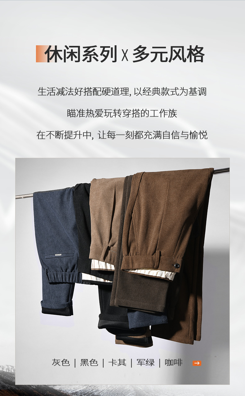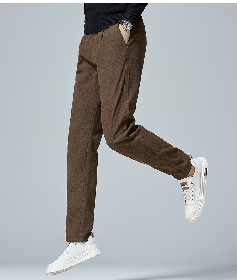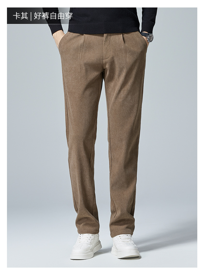 啄木鸟春秋灯芯绒裤子男款直筒宽松轻奢商务条绒加绒百搭休闲长裤