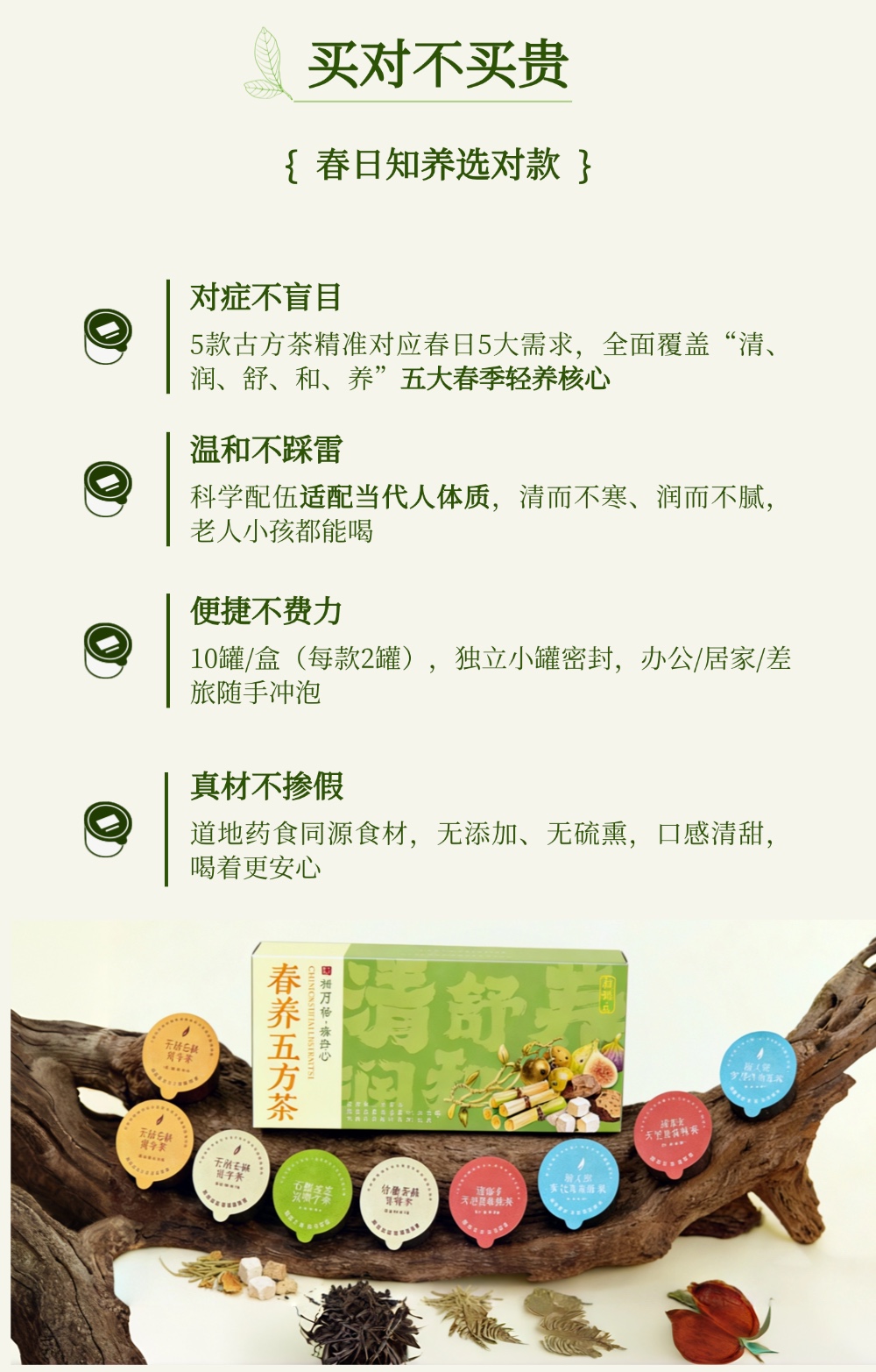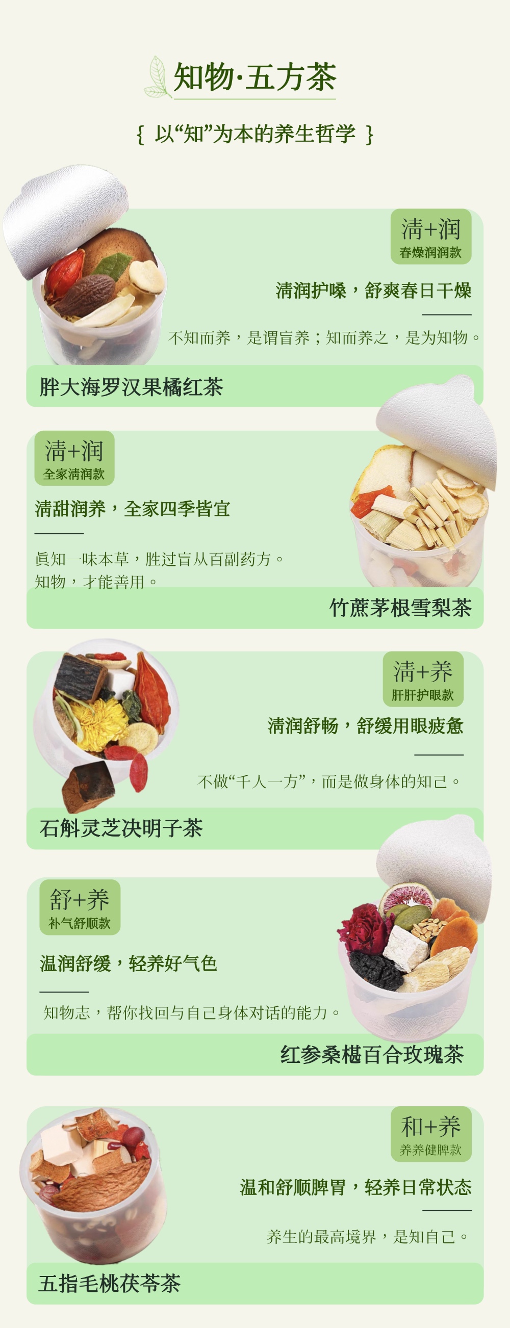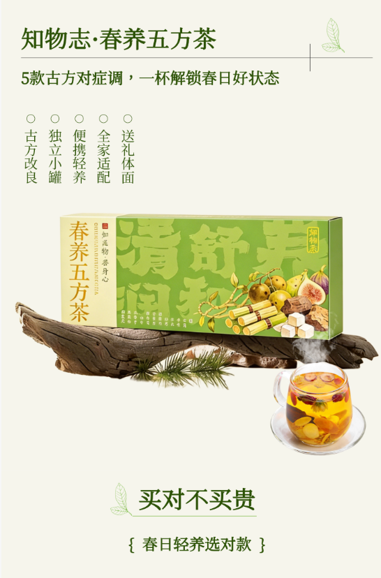 【新品特惠!】知物志·春养五方茶5款古方轻养茶春季养生茶组合清润祛湿 护眼补气竹蔗茅根雪梨红参五指毛桃茯苓胖大海罗汉果石斛决明子茶