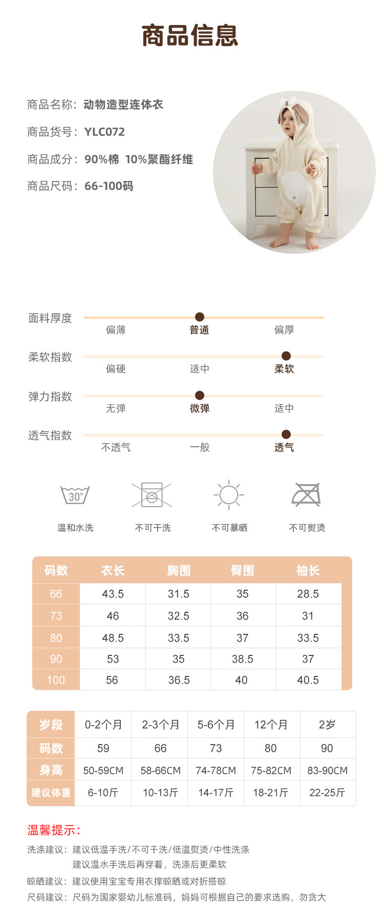 【动物造型连体衣】新款男女宝宝动物造型连体衣a类婴儿可爱爬服可爱包屁衣外出服