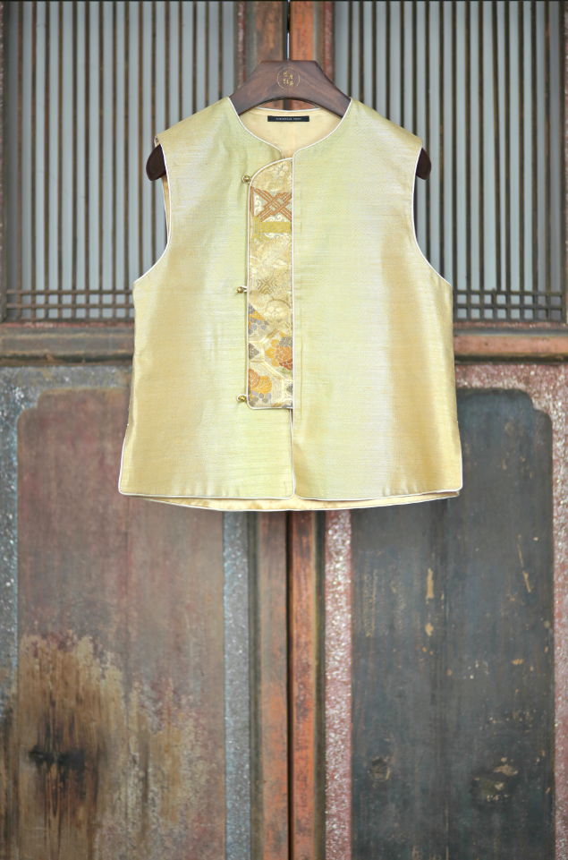 盛唐牡丹盛奢系列 | 西阵织偏襟马甲-黄色